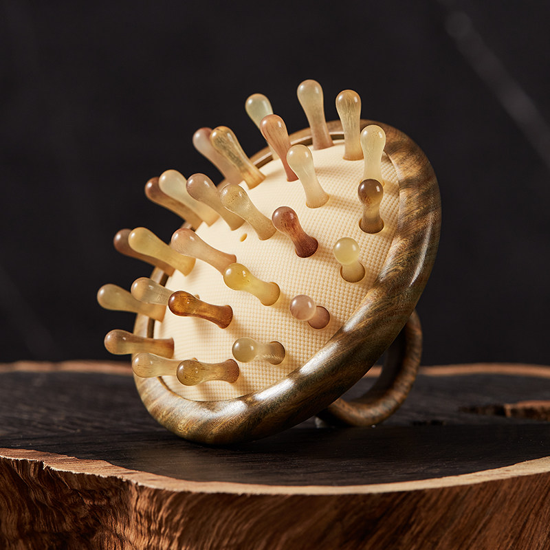 白水牛角水滴按摩梳头部全身通用经络刷头疗专用头皮疗器梳子刮痧