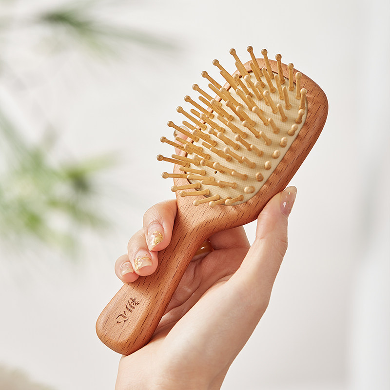 天猫初心天然实木迷你榉木气垫梳头皮按摩梳儿童梳便携梳子头部养发梳
