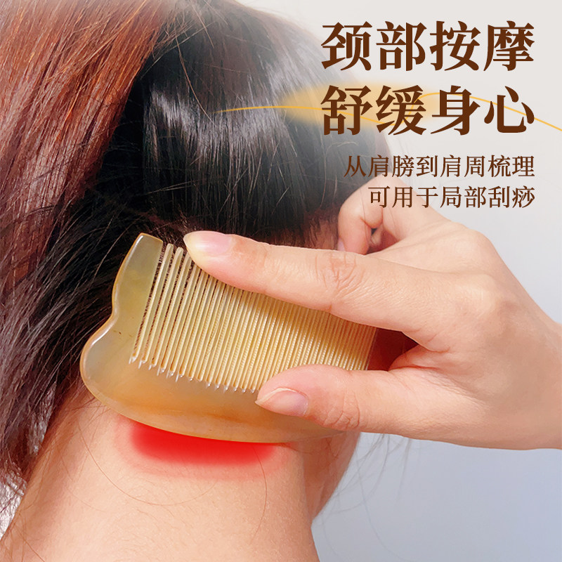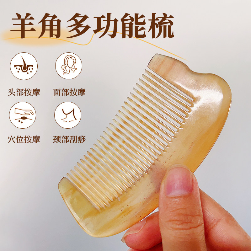 天猫羊角梳正品天然头部头疗经络梳按摩梳下巴提拉女家用刮痧板小梳子