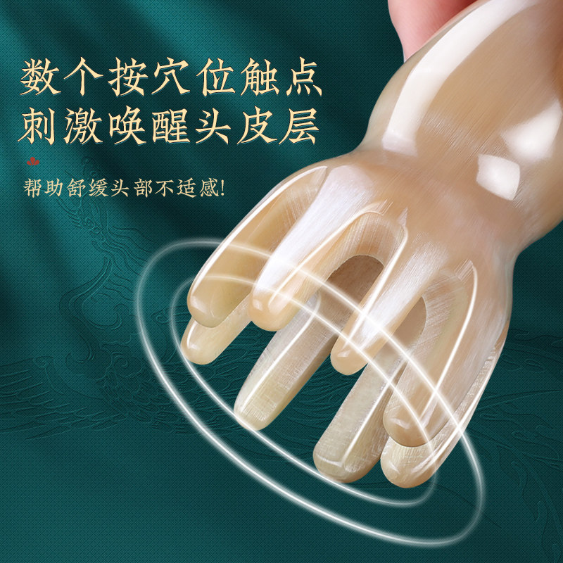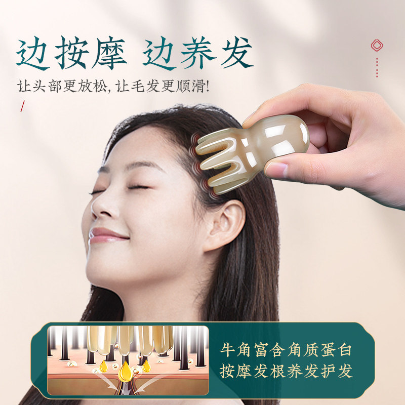 淘白水牛角水滴按摩梳头部全身通用经络刷头疗专用头皮疗器梳子刮痧