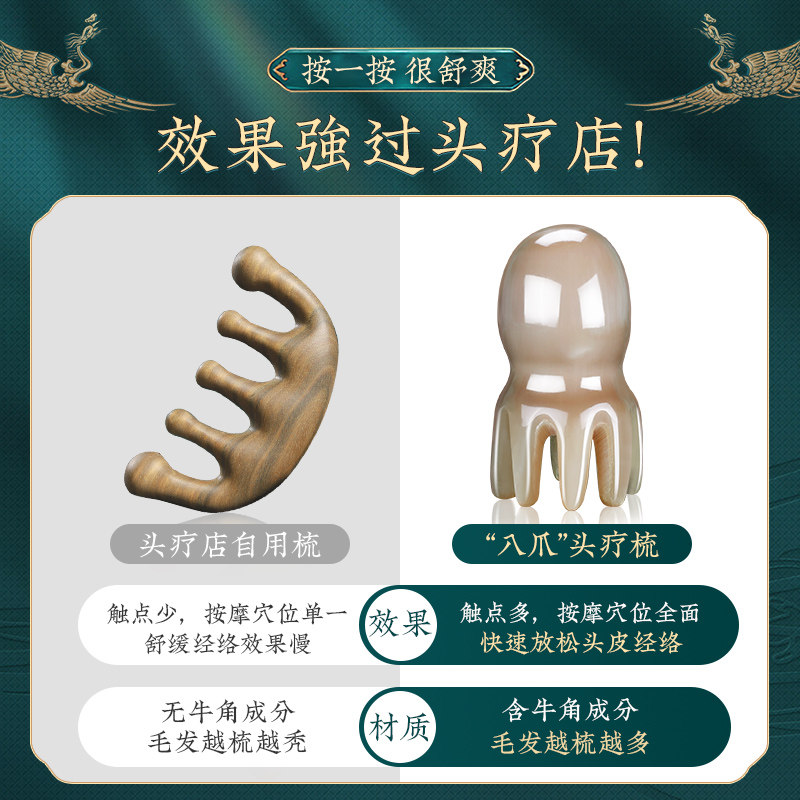 天猫牛角梳子正品八爪按摩头疗专用圆筒刮痧器洗头部经络梳头皮女便携