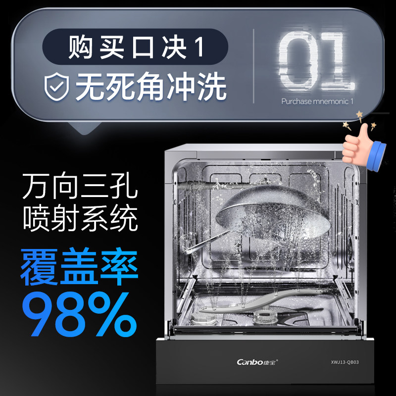 天猫康宝海豚龙卷风新款13套洗碗机全自动家用嵌入式消毒洗碗一体304