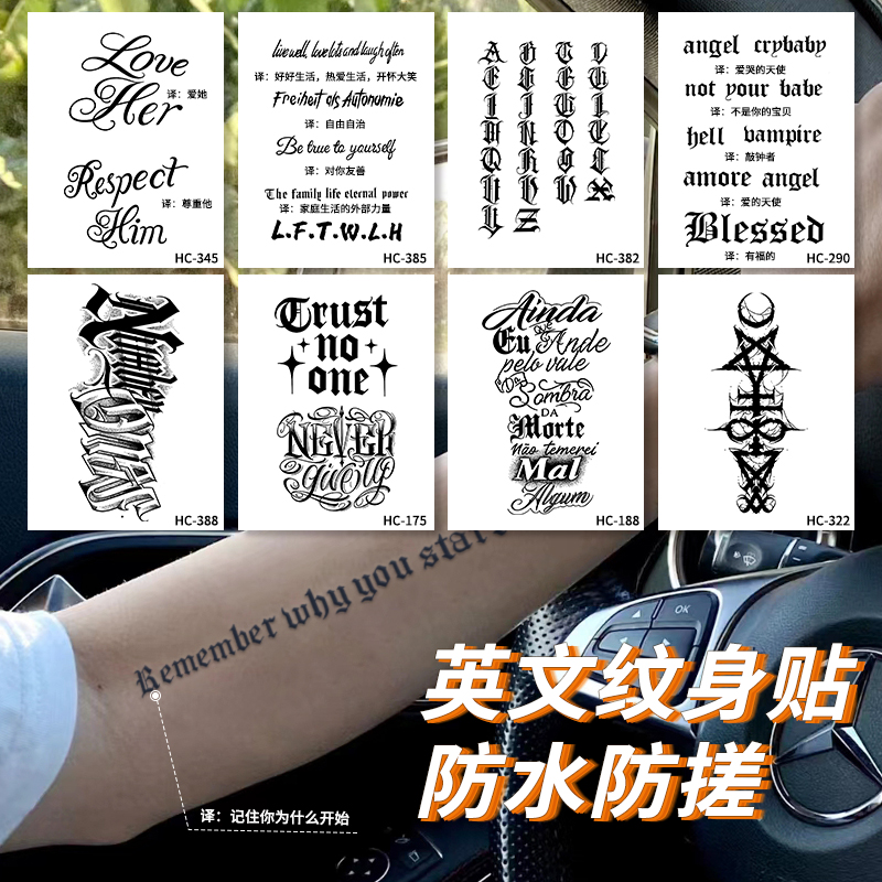 天猫英文字母哥特风草本纹身贴防水男持久手臂句子花体字刺青仿真学生