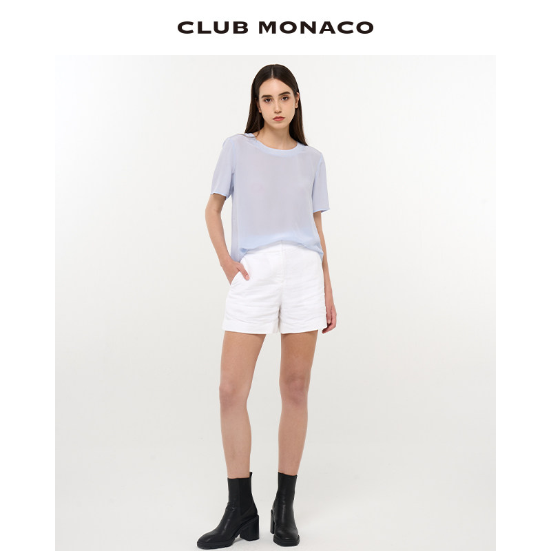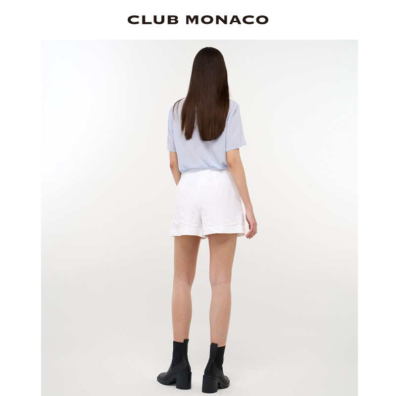 天猫CLUB MONACO女装透气亚麻混纺休闲简约阔腿短裤