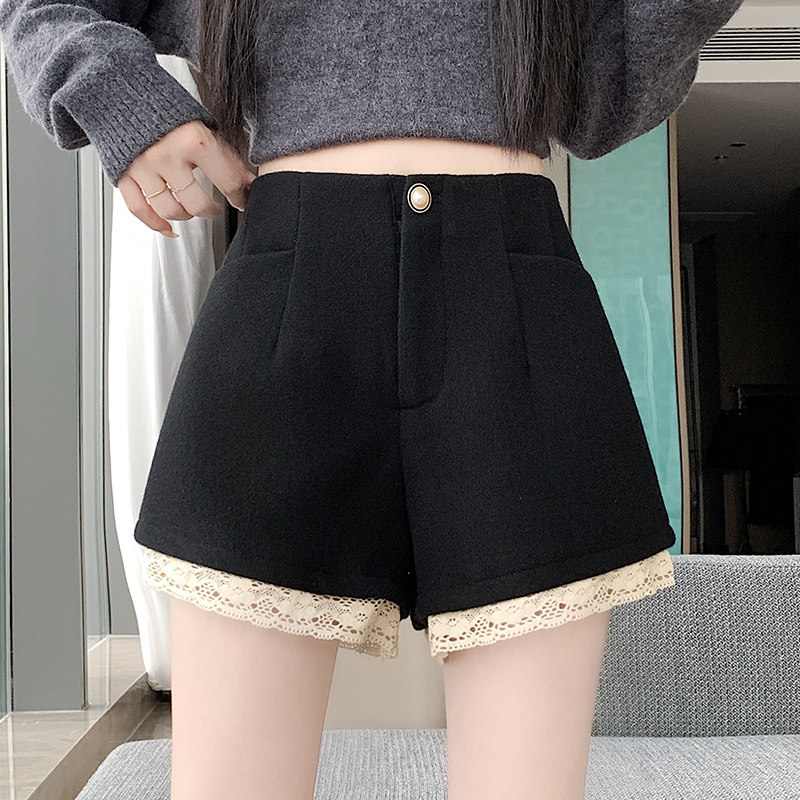淘宝加厚蕾丝阔腿短裤女大码胖mm秋冬外穿高腰显瘦休闲百搭a字靴裤女