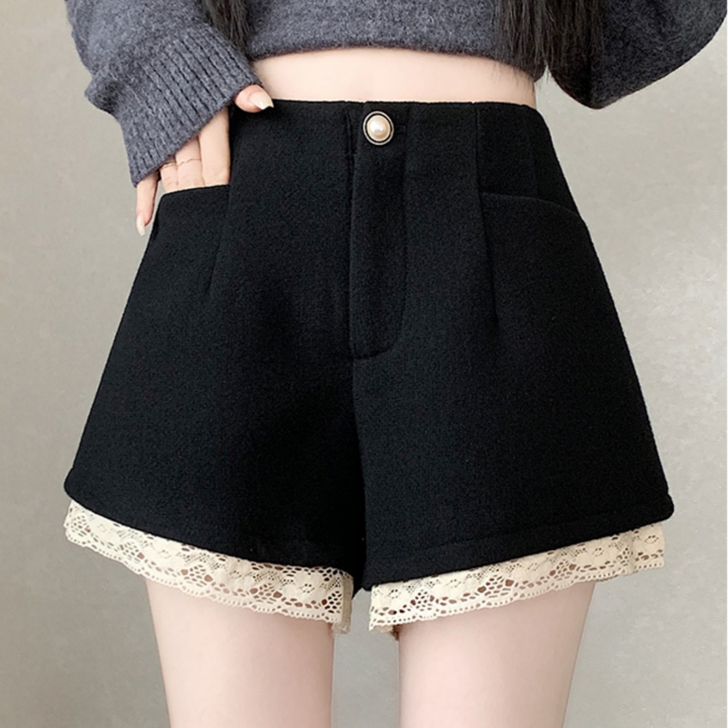 淘秋冬新款毛呢短裤女大码高腰显瘦呢子百搭靴裤外穿打底a字阔腿裤