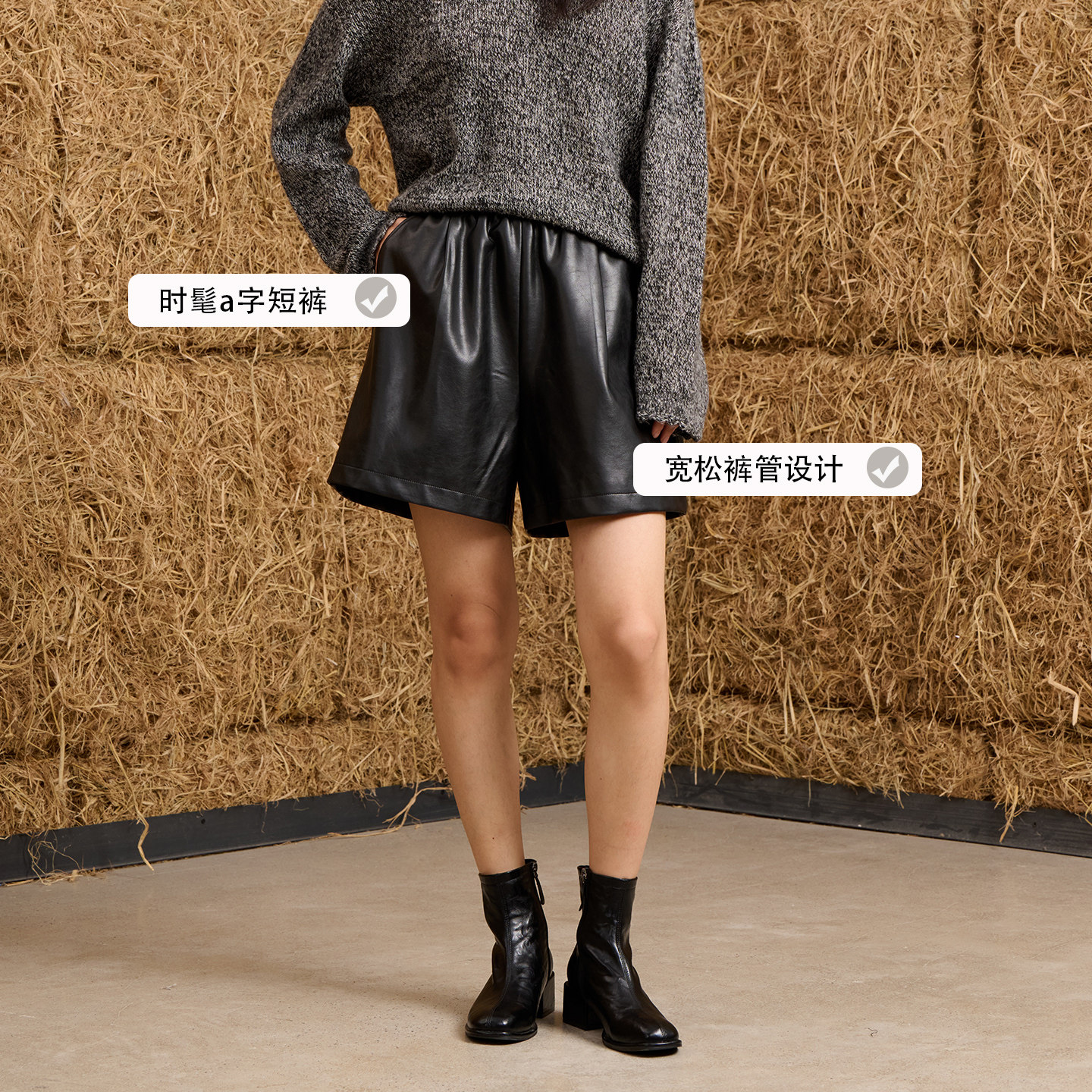 【昕怡粉丝专享】【美拉德】PIT休闲咖色皮质短裤女秋季新款