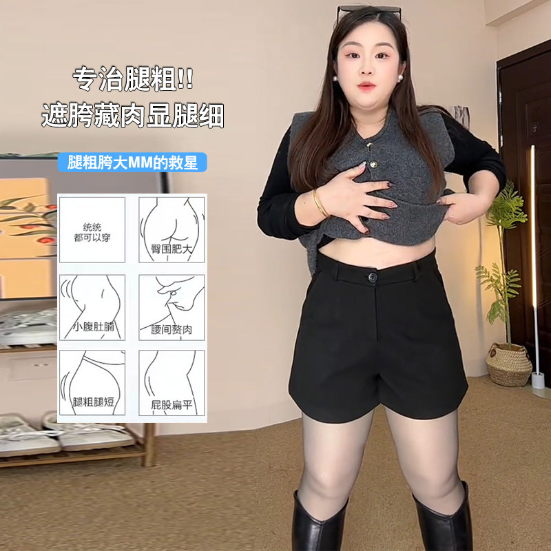 大码胖mm毛呢短裤女显瘦高腰呢子百搭靴裤外穿打底a字阔腿裤