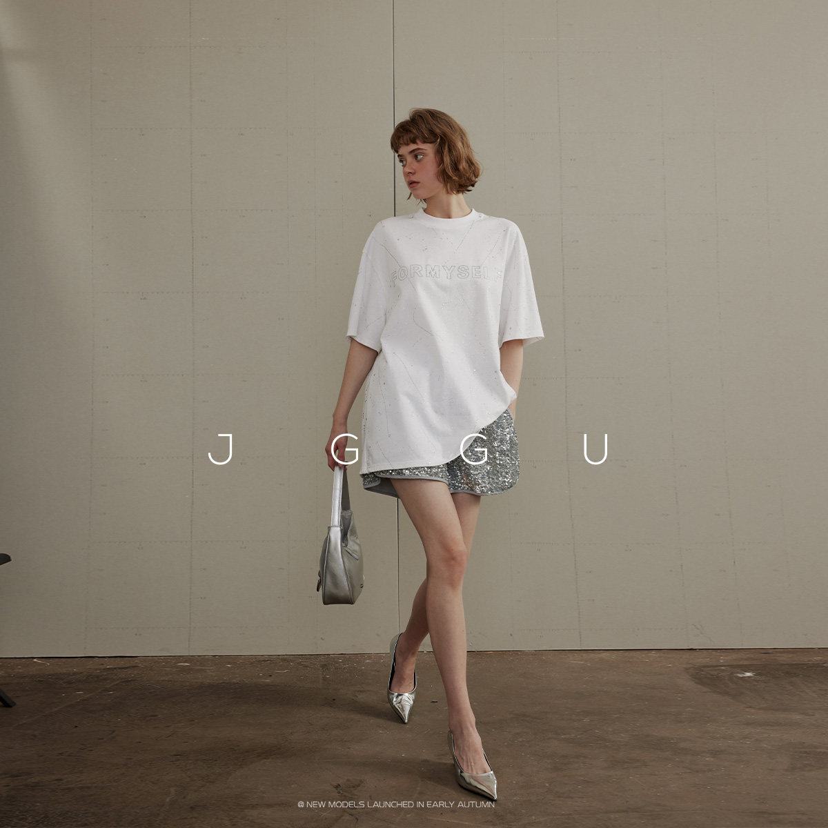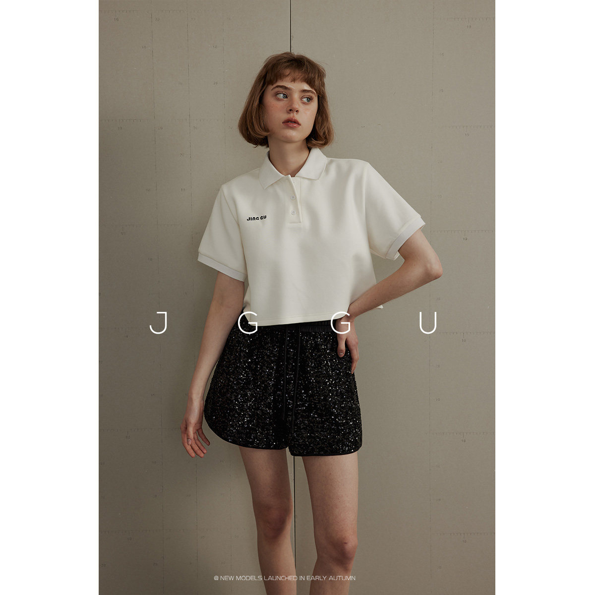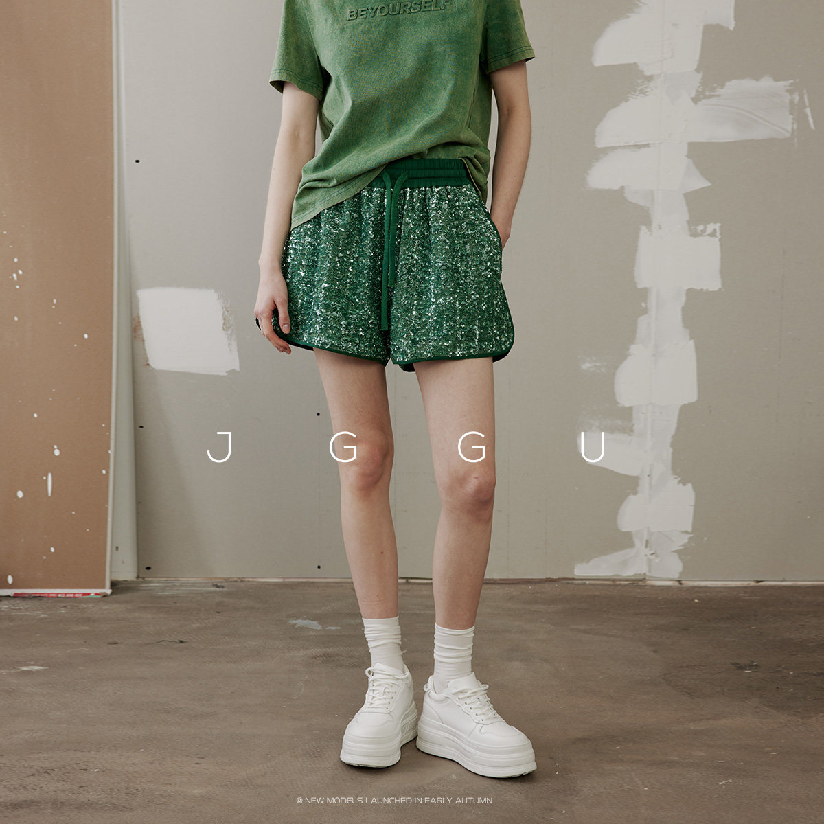 天猫晶咕黑标JGGU法式减龄亮闪珠片松紧腰短裤女夏季宽松高腰显瘦裤子
