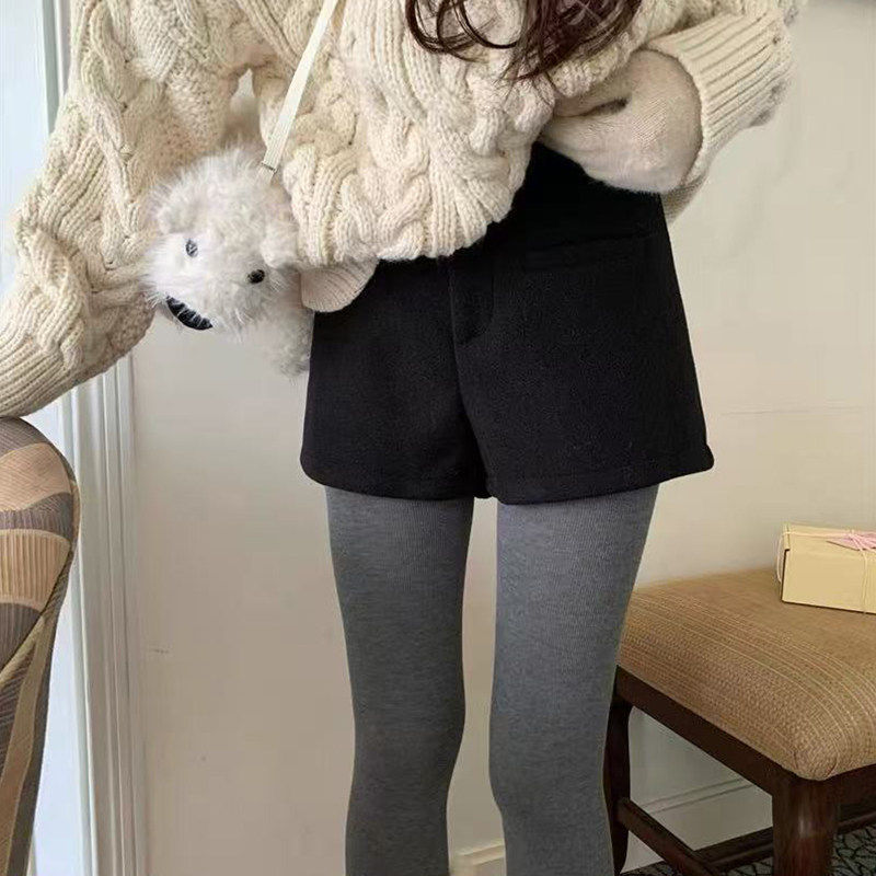 淘灰色毛呢短裤女冬季2025新款显瘦韩版中高腰紧身包臀呢子直筒靴裤