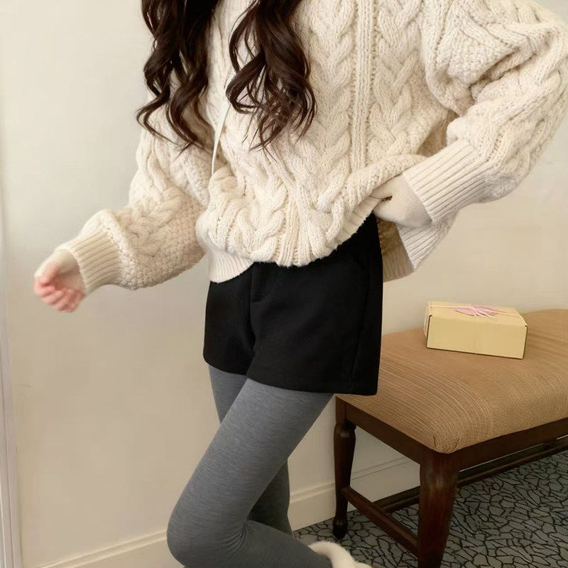 胖MM冬季新款麻花纹针织短裤300斤大码高腰显瘦百搭直筒五分裤女