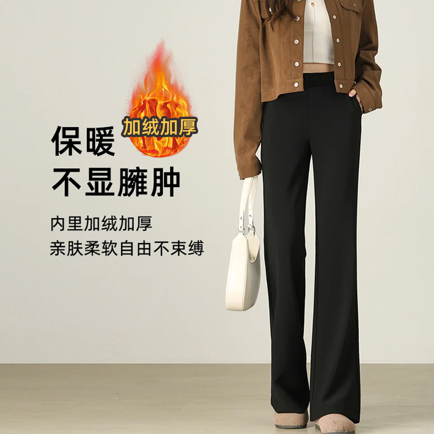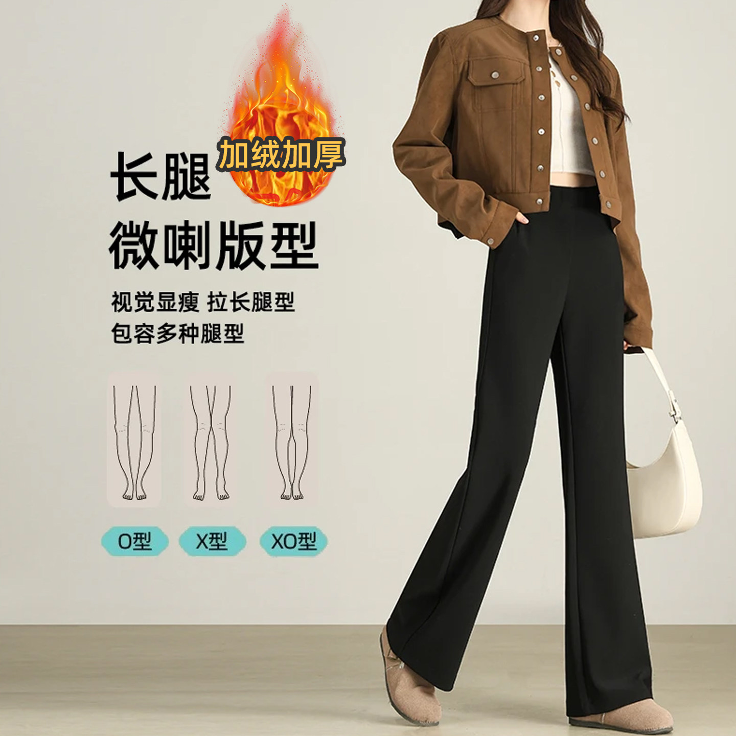 淘宝黑色微喇西裤子女款爆款2025新款秋冬加绒显瘦垂感弹力百搭喇叭裤