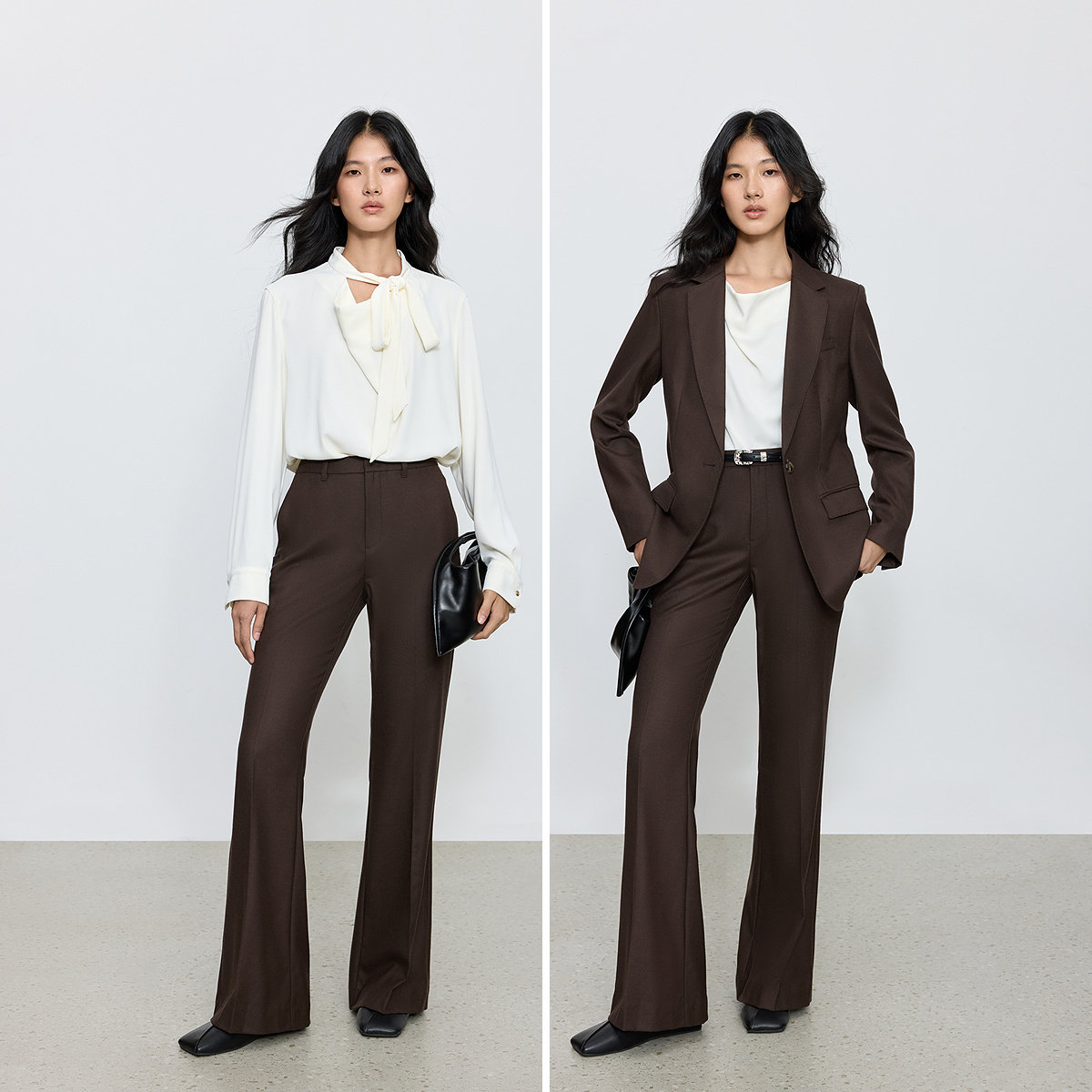 天ONLY2025冬季新款通勤风垂顺西裤面料设计喇叭裤长裤休闲裤女