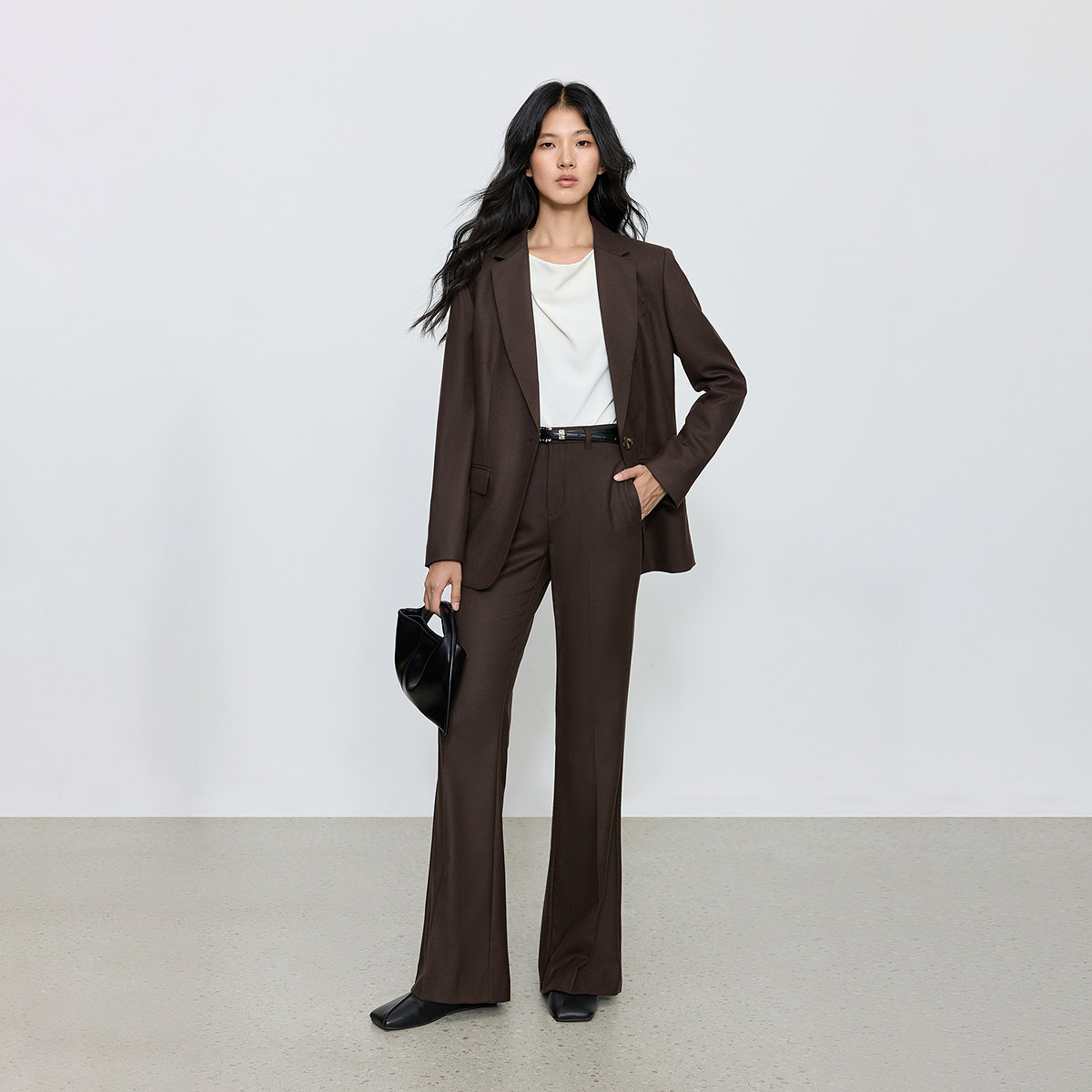 ONLY2025冬季新款通勤风垂顺西裤面料设计喇叭裤长裤休闲裤女
