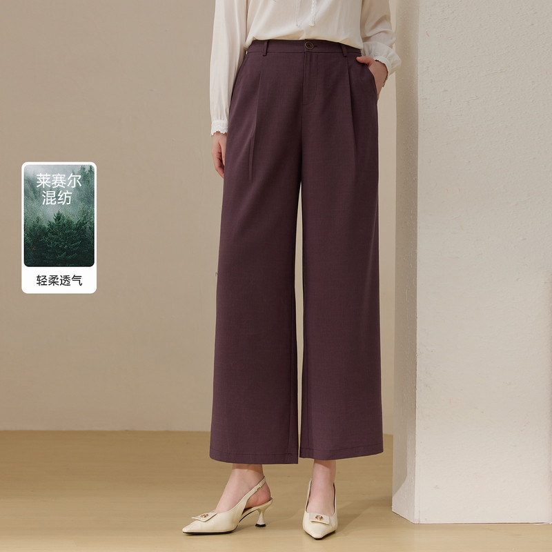 天百斯盾官方女装西裤夏季通勤气质垂感时尚休闲开叉九分喇叭裤