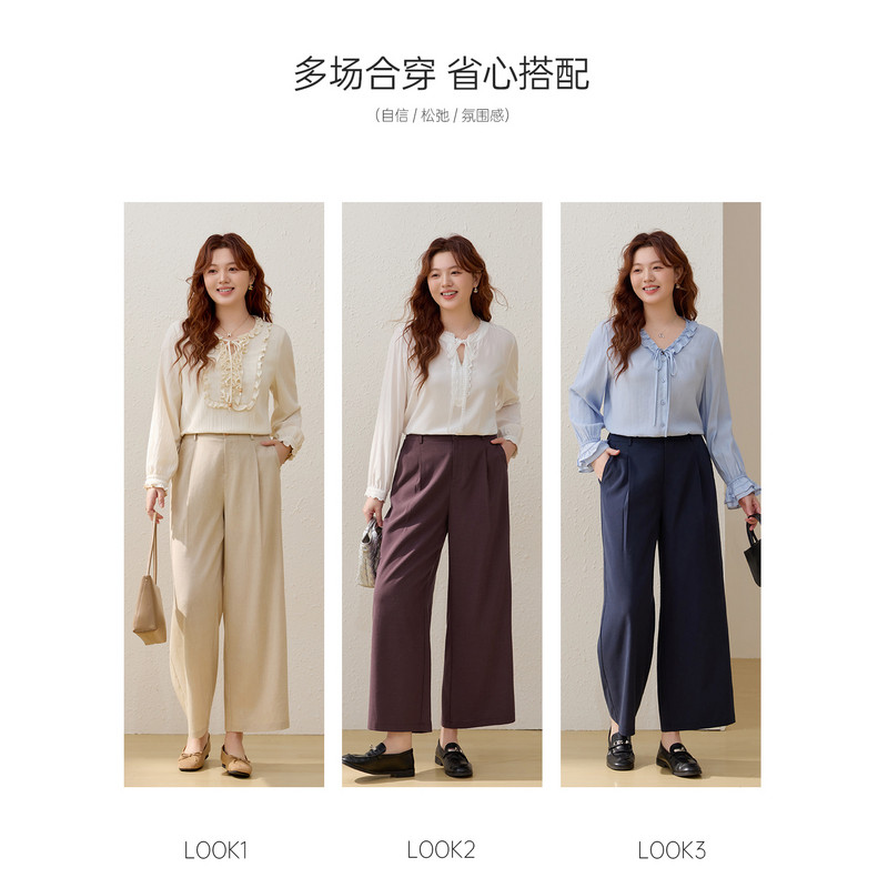 淘宝【海屿微光】老钱风垂感阔腿西裤纤莉秀大码女装胖mm2026春装新款