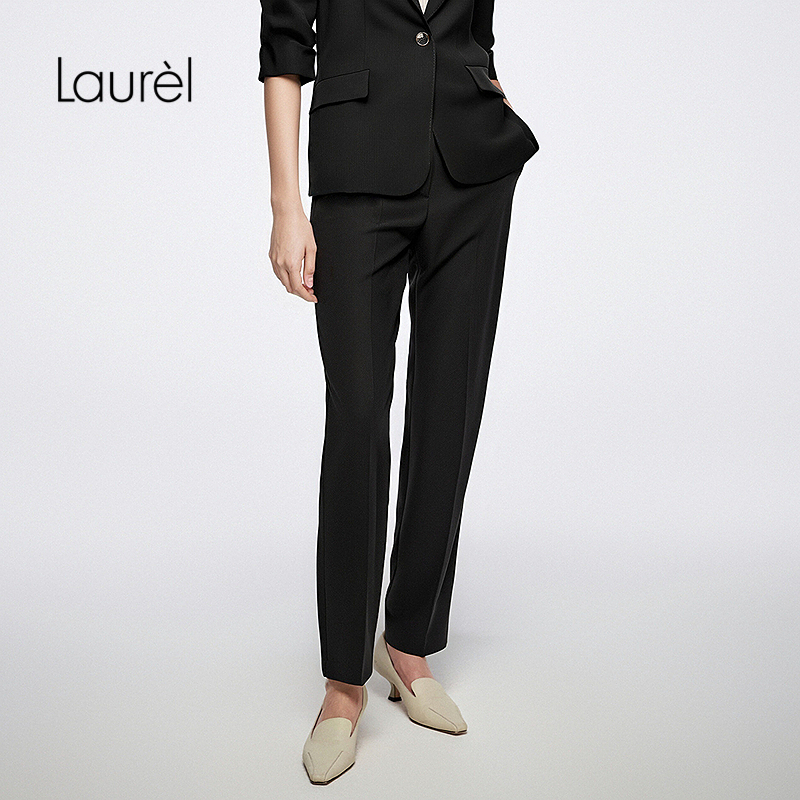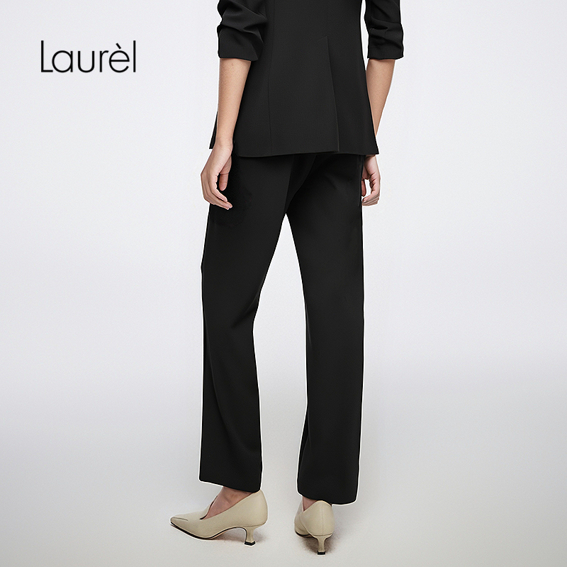 天猫【绵羊毛】Laurel劳芮新款黑色利落直筒西裤女LWD366K00800