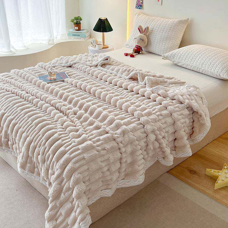 淘宝#新款仿裘皮兔绒毛毯加厚保暖家用1米1.5米1.8米双人单人毛毯子