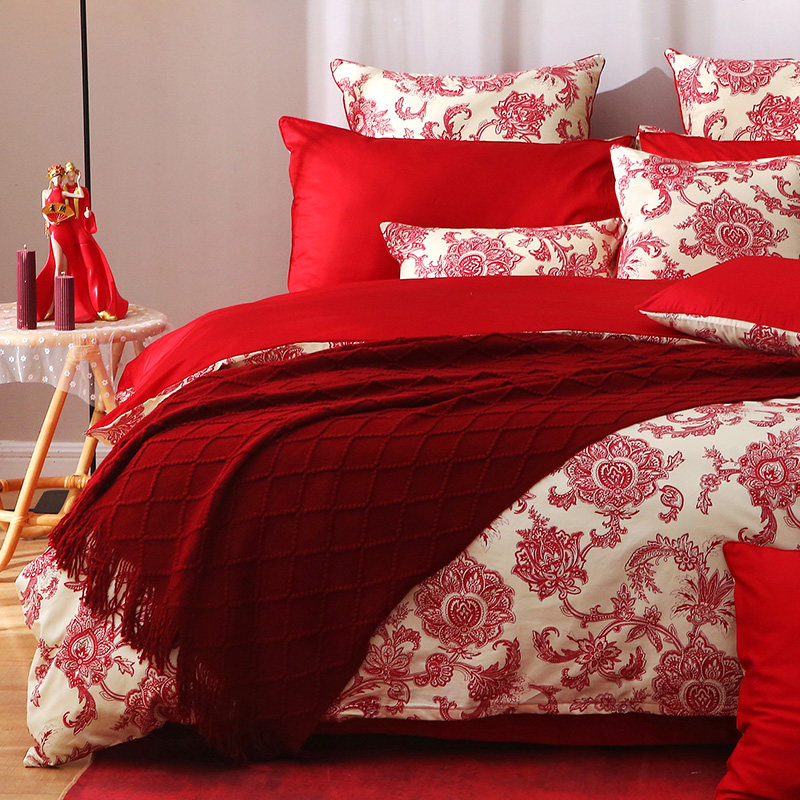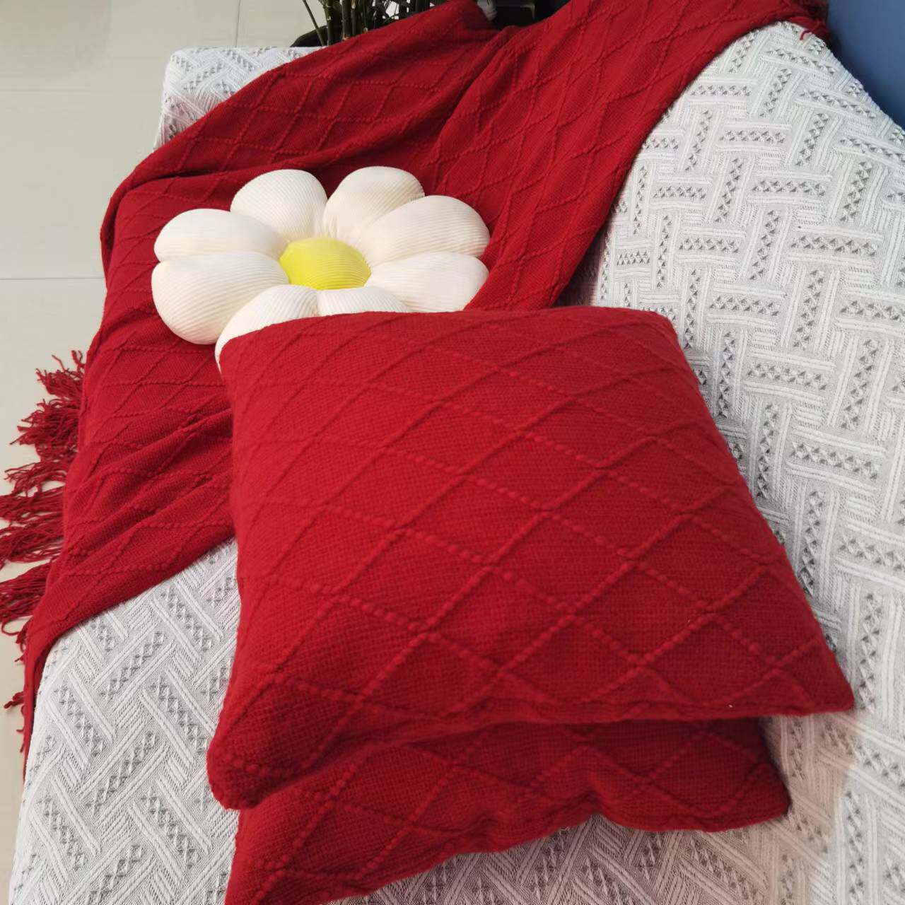 淘宝红色毯子酒红色毛毯新年沙发毯北欧风铺床尾巾结婚婚庆薄毯拍照毯