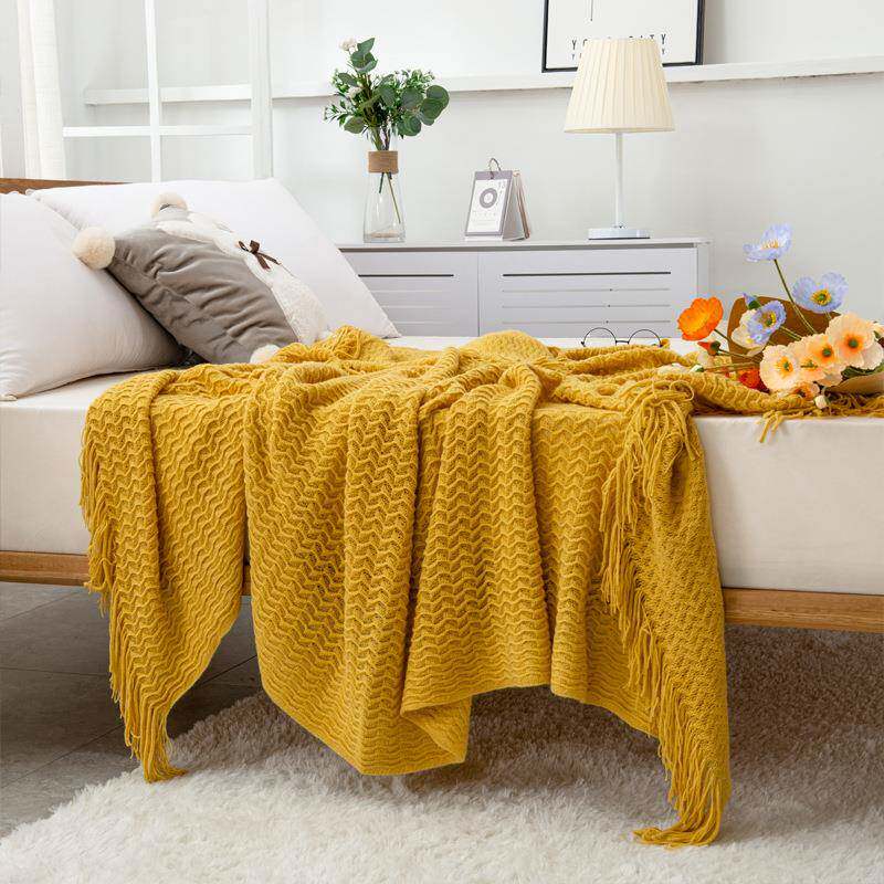 淘宝C8贝壳毯纯色针织毯民宿毯酒店床位搭毯四季毯子沙发搭毯毛毯