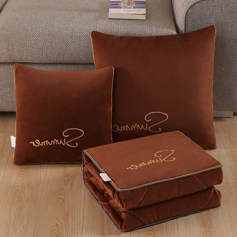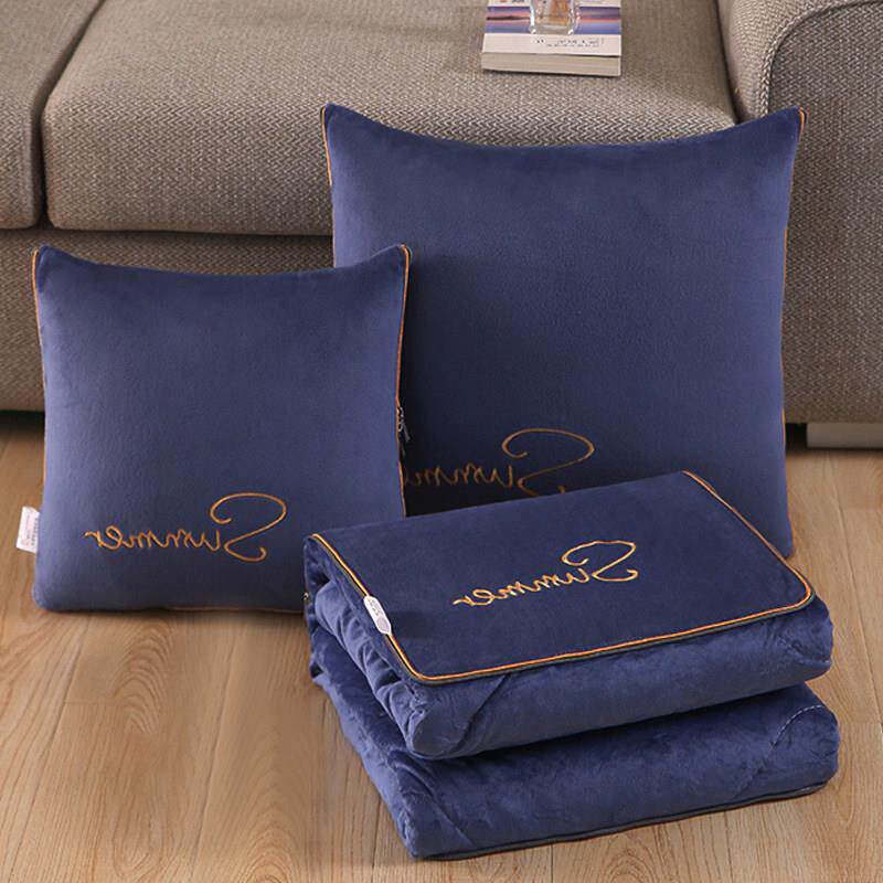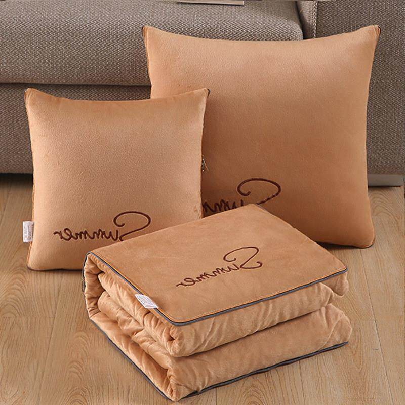 淘纯色两用抱枕被全棉二合一汽车载靠垫公司沙发午睡可折叠四季毛毯
