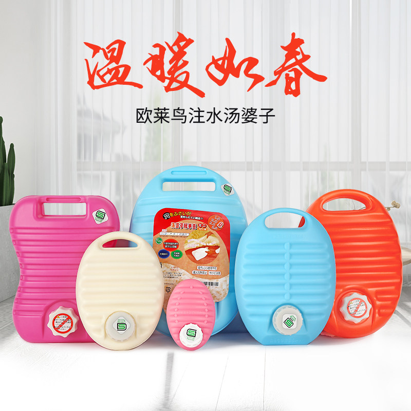 淘宝欧莱鸟汤婆子注水热水袋加厚暖手宝热敷暖肚子床上暖脚壶暖被窝