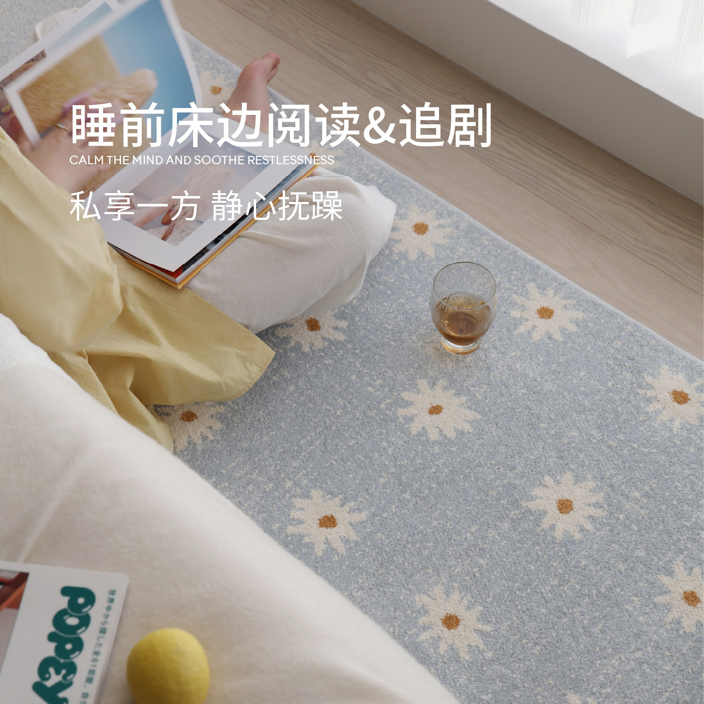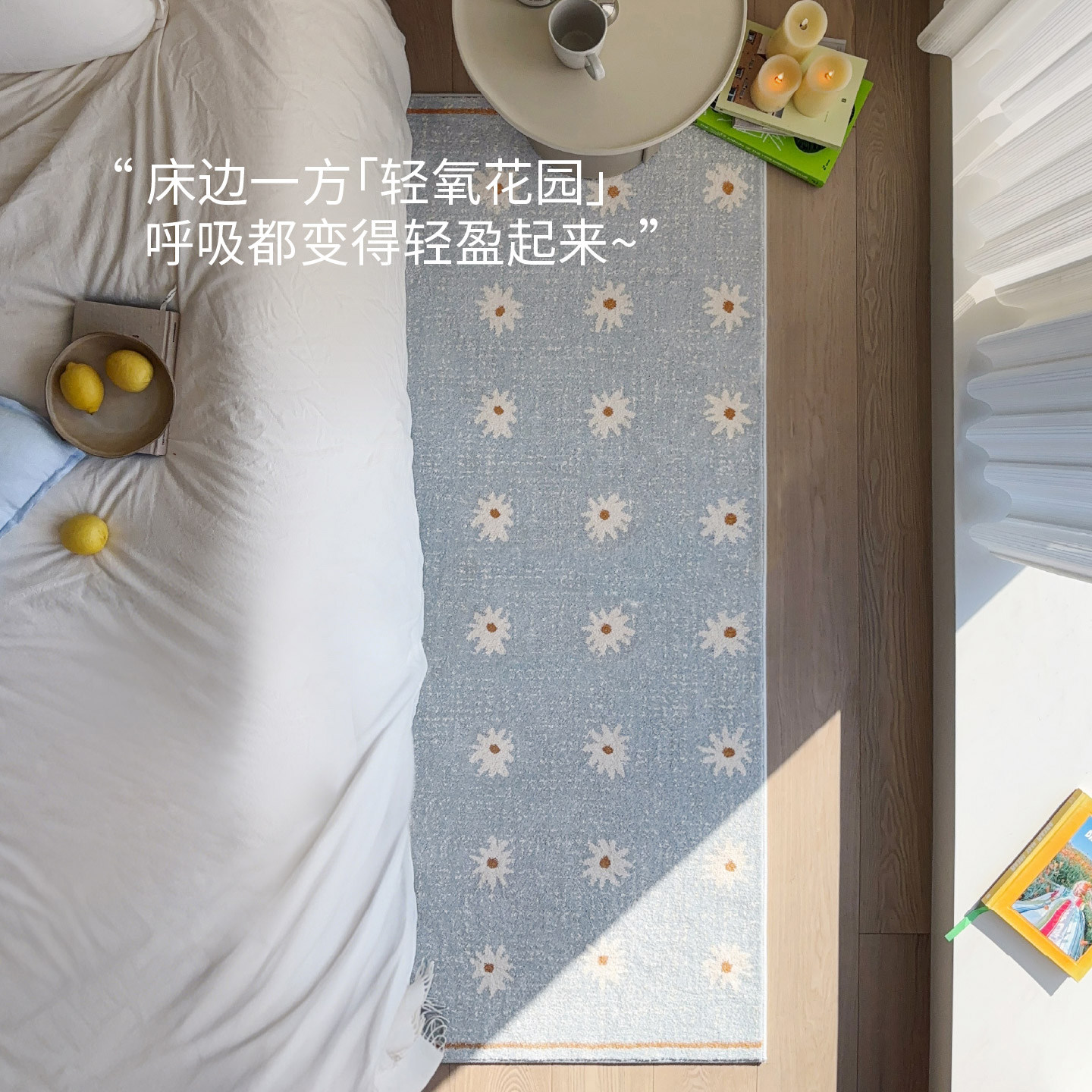 天猫赛波斯小雏菊彩色意式无胶床边毯无甲醛卧室地毯轻奢高级床尾毯