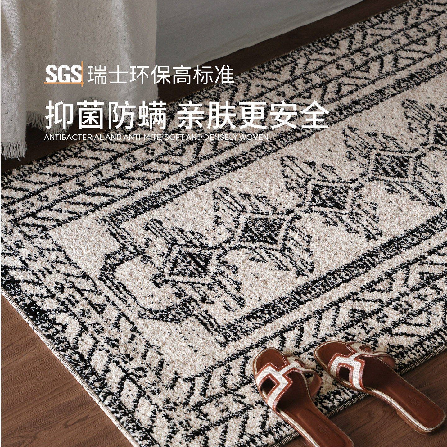 中古风卧室床边地毯家用客厅地垫沙发茶几毯防水防污床前床边脚垫