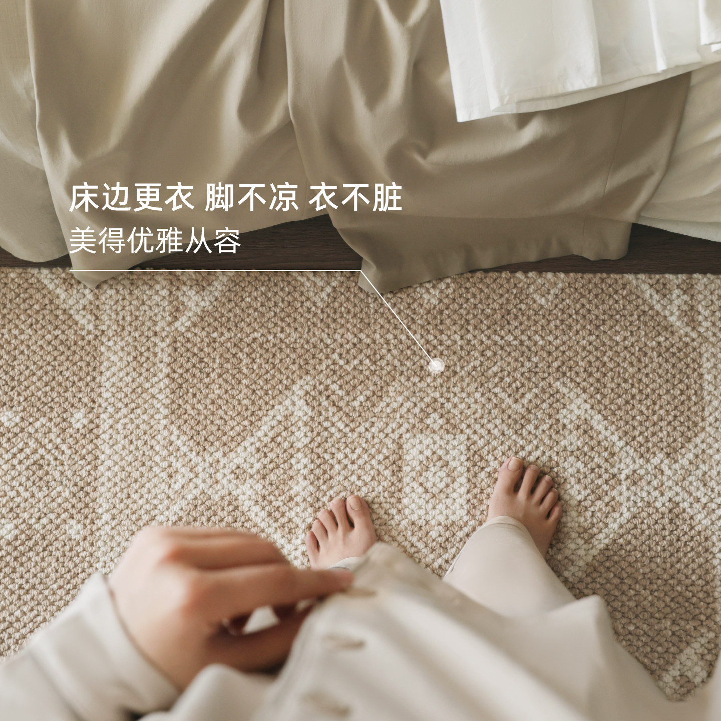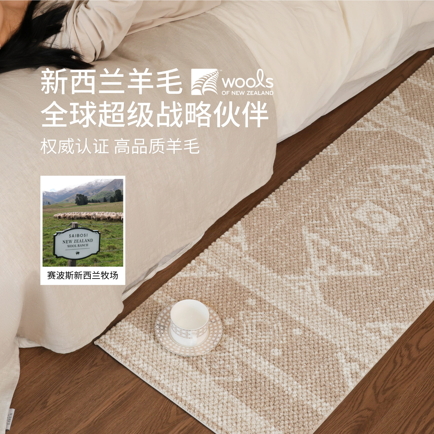 天猫赛波斯进口羊毛床边毯美式原木风卧室地毯轻奢高级感房间床尾毯