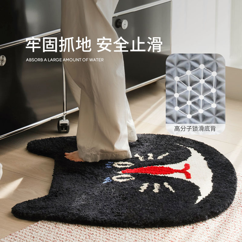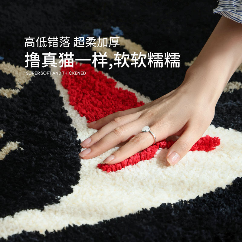 天猫赛波斯茶话会系列床边毯卡通猫防滑可机洗卧室客厅儿童房异形地毯