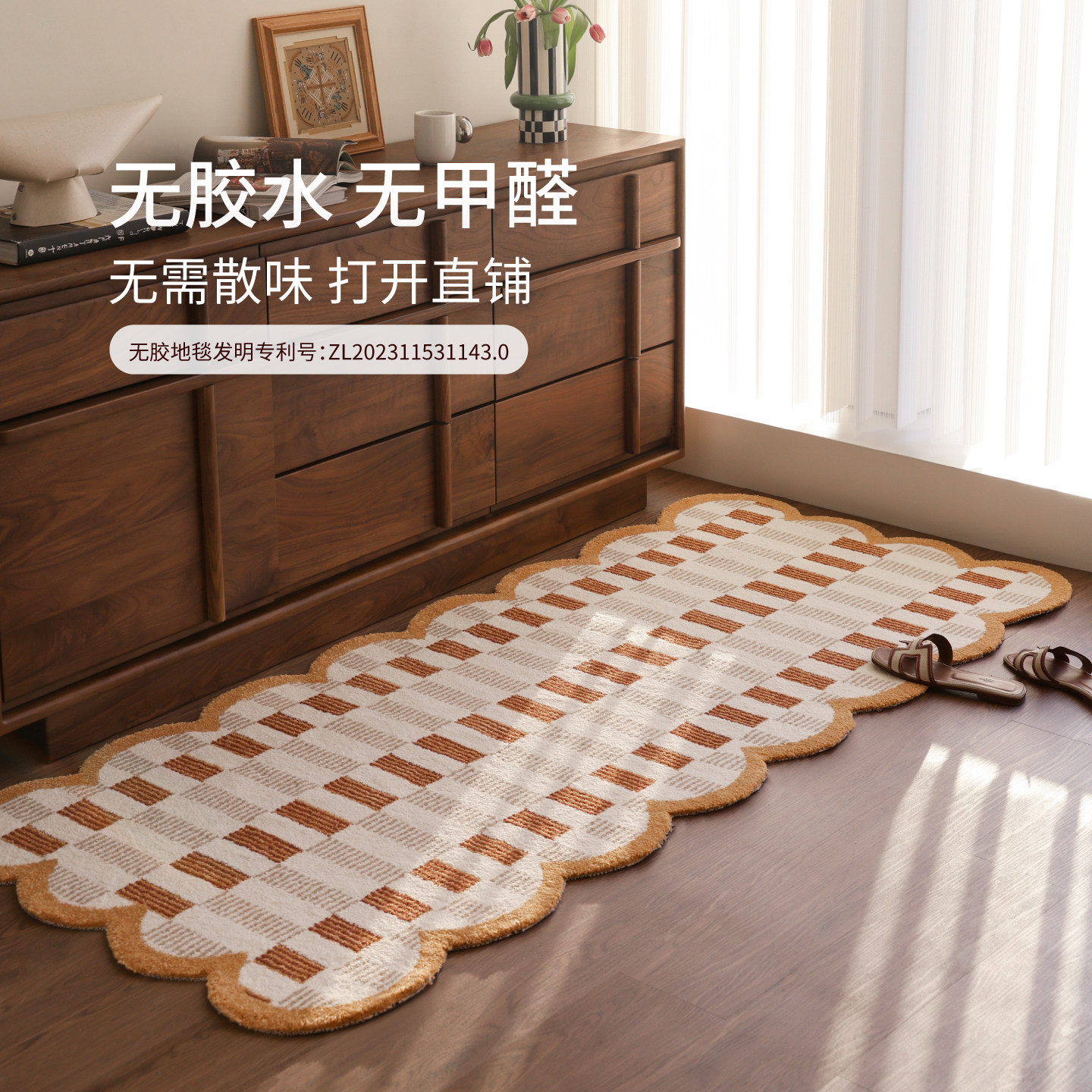 中古风卧室床边地毯家用客厅地垫沙发茶几毯防水防污床前床边脚垫