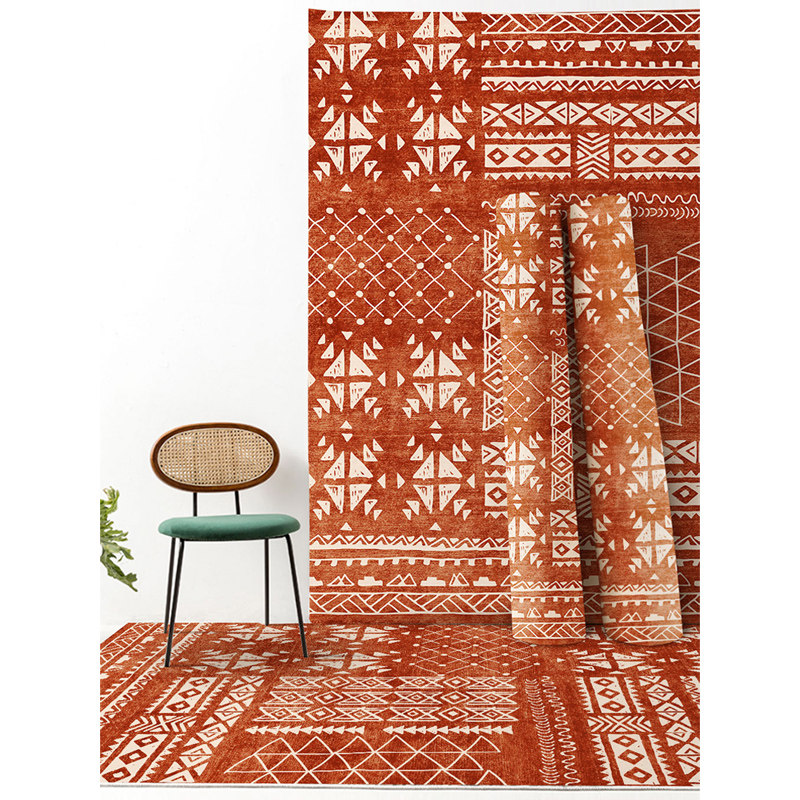 中古风卧室床边地毯家用客厅地垫沙发茶几毯防水防污床前床边脚垫