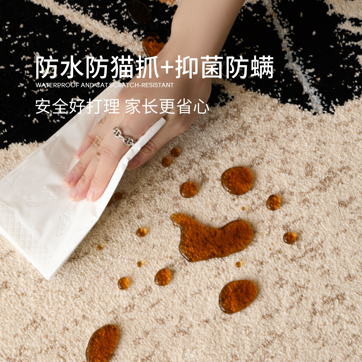 中古风卧室床边地毯家用客厅地垫沙发茶几毯防水防污床前床边脚垫