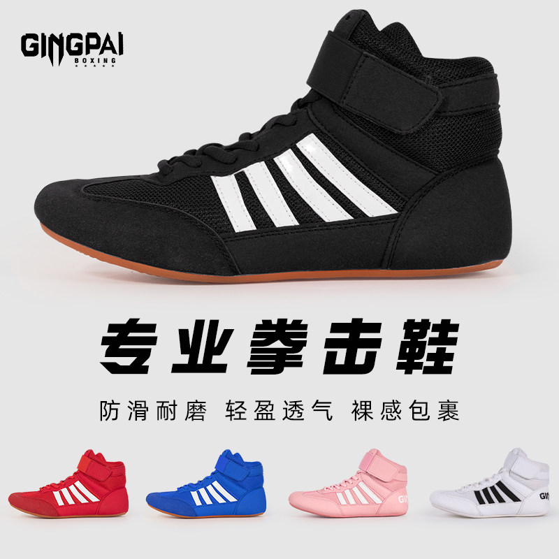 天高帮拳击鞋男女儿童散打搏击格斗训练鞋成人摔跤鞋室内健身武术鞋