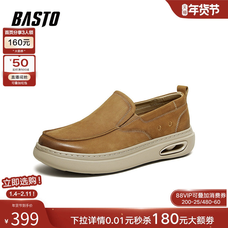 天猫百思图26春季商场新款一脚蹬豆豆乐福鞋商务男士休闲皮鞋WC521AM6