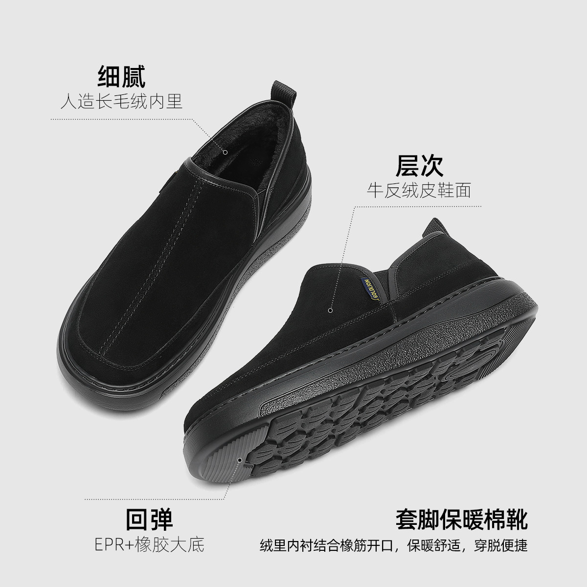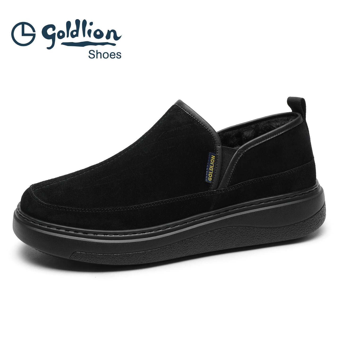 天猫Goldlion男鞋官方正品2025冬季新款保暖棉鞋男士商务休闲厚底皮鞋