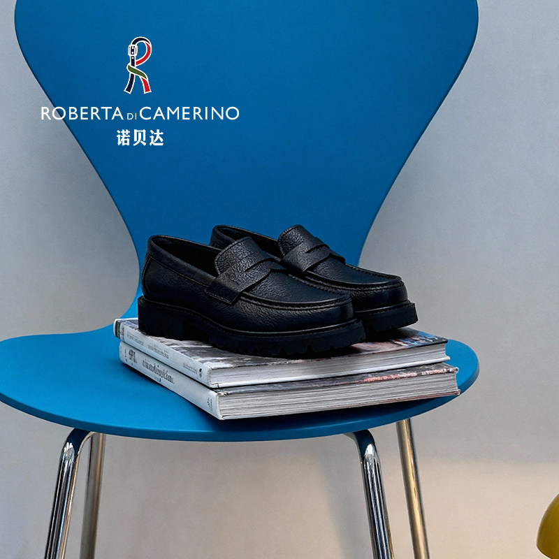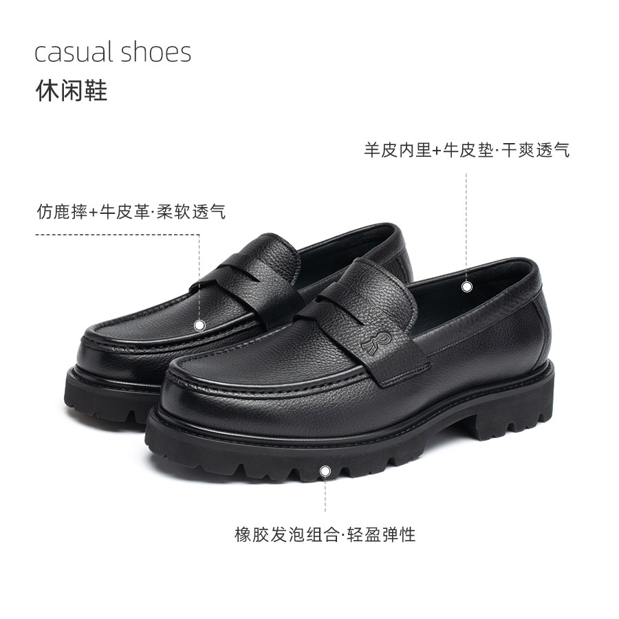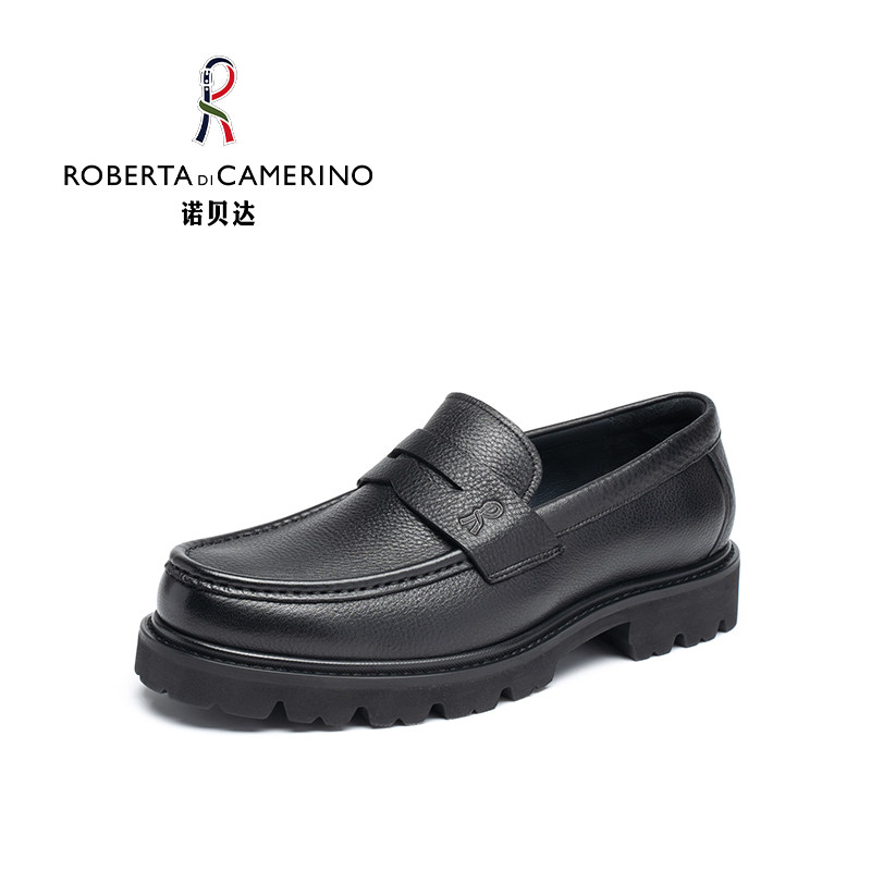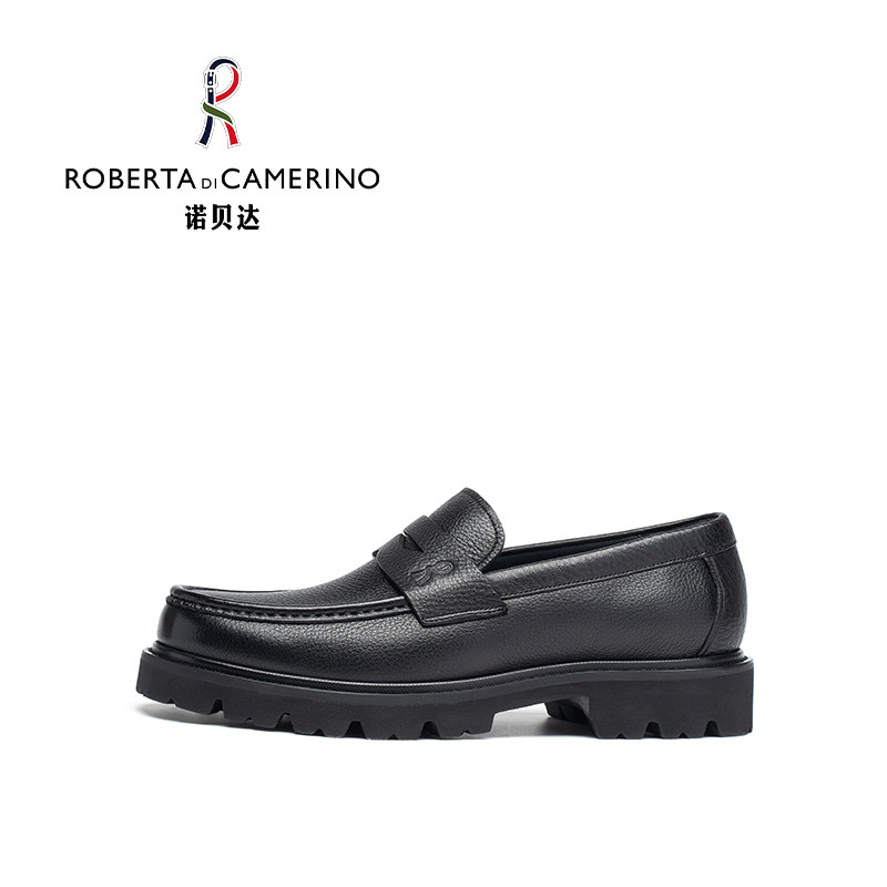 天猫意大利诺贝达男鞋男士商务休闲皮鞋真皮鹿纹厚底套脚西装乐福鞋子