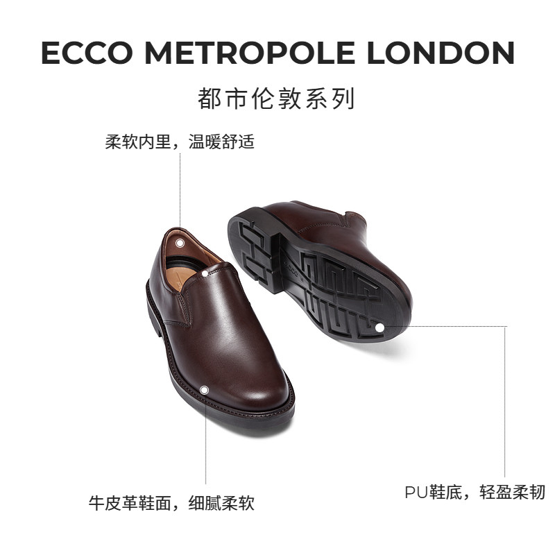 天猫ECCO爱步男士乐福鞋 真皮透气豆豆鞋一脚蹬皮鞋 都市伦敦525624