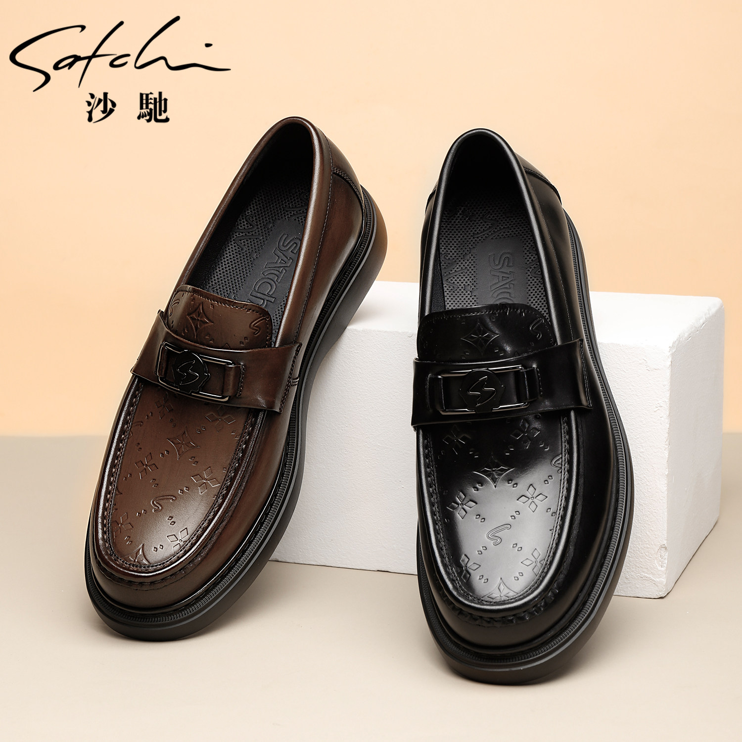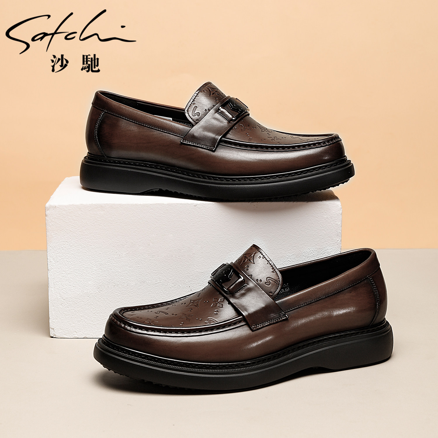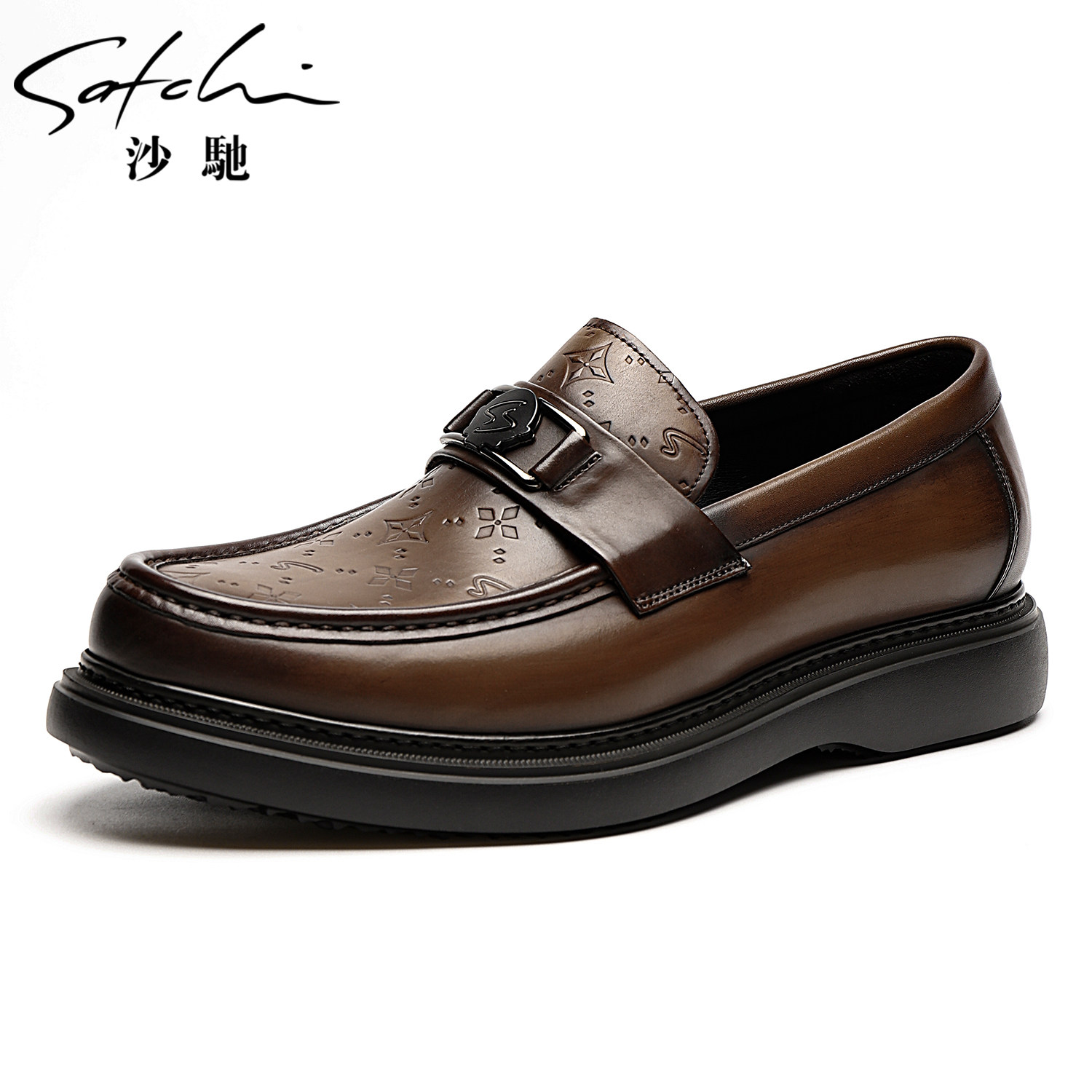 沙驰男鞋2025秋季新款乐福鞋,精选进口优质牛皮打造,触感柔软、透气亲肤,彰显高端品质。采用经典棕色真皮设计,简约大方,轻松搭配商务休闲或日常穿搭。鞋身线条流畅,融入现代美学与实用主义,兼具时尚与舒适。轻量化橡胶底设计,减震防滑,行走轻盈无负担。内里采用透气材质,长时间穿着依然干爽舒适。作为2025年秋季主打单品,这款乐福鞋不仅延续沙驰一贯的精湛工艺,更以舒适耐穿赢得青睐,是都市男性提升品味与舒适体验的理想之选。