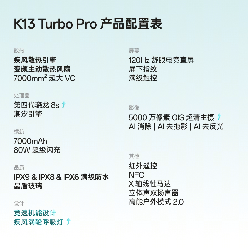 【新品上市】OPPO K13 Turbo Pro震撼来袭!搭载旗舰级性能芯片,流畅运行大型游戏与多任务处理,配备6000mAh超大电池与80W超级闪充,续航无忧,充电极速。6.78英寸120Hz高刷护眼屏,带来沉浸式视觉体验。后置5000万像素AI三摄,支持夜景增强与4K视频录制,影像实力出众。轻薄机身设计,握感舒适,颜值与实力兼具。现于OPPO手机官方旗舰店官网热销,正品保障,支持全国联保。同系列K12x 5G、K12S等多款机型同步可选,满足不同需求。即刻入手OPPO K13 Turbo Pro,畅享智慧新体验!