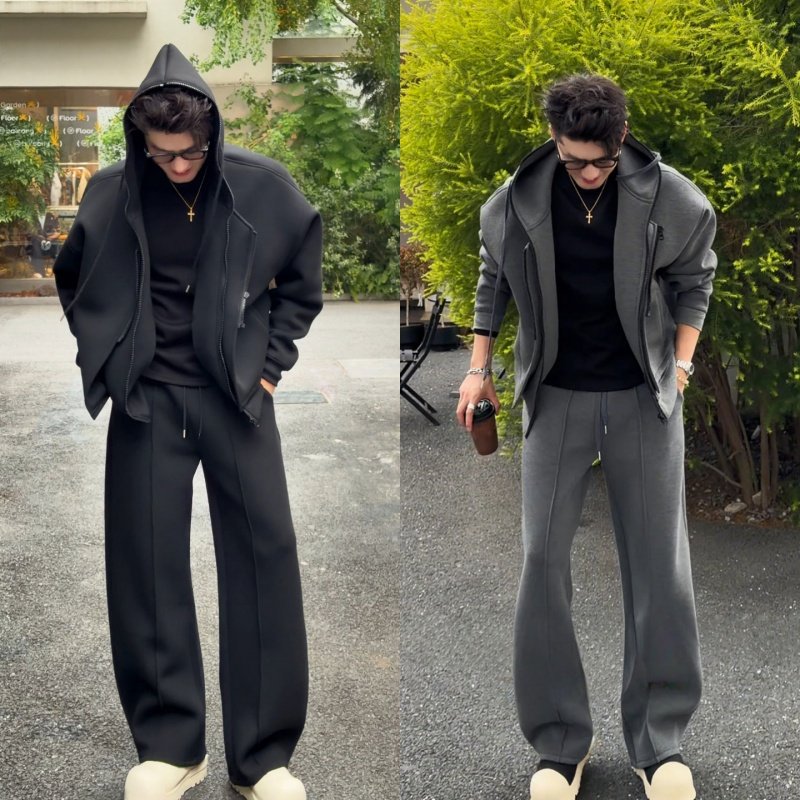 这款男士高级感运动休闲套装,专为春秋冬季节打造,融合美式潮牌风格与实用机能设计。连帽外套采用挺括有型的面料,线条利落,搭配同系列卫衣,整体协调统一,彰显都市型格。细节处融入精致车缝线与品牌标识,低调中透出品质感。宽松剪裁兼顾舒适与潮流,适合日常通勤、休闲出行等多种场合。配色以经典黑、灰、军绿为主,易于搭配,轻松穿出高级氛围感。无论是单穿还是叠穿,都能展现男士随性而不失品味的穿搭态度,是追求质感与风格并重的现代男性理想之选。