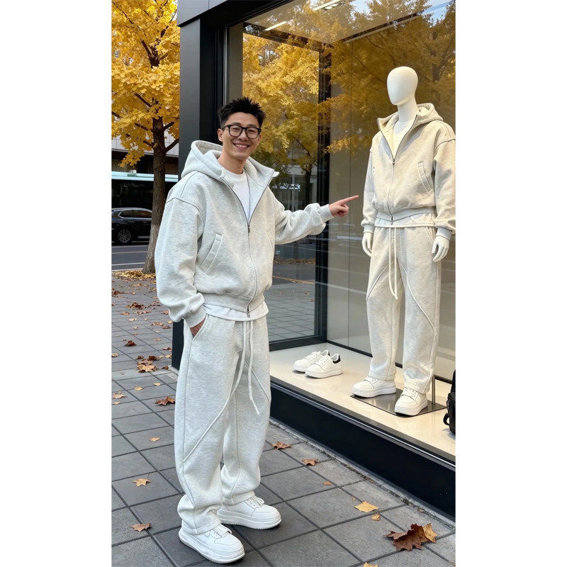 2026秋冬新款男生酷帅穿搭两件套,以极简廓形与高级质感重新定义街头潮流。上身采用宽松落肩设计开衫卫衣,精选重磅纯棉面料,保暖透气,搭配立体剪裁与低调撞色织带,尽显层次感;下装为同系列束脚卫裤,侧边条纹点缀拉长腿部线条,松紧腰头舒适贴合。整体以高级灰、炭黑、燕麦色为主色调,百搭不挑人。细节处融入隐藏式口袋与金属拉链装饰,兼顾实用与个性。无论是日常出街、校园通勤还是休闲聚会,这套穿搭都能轻松驾驭,展现型格不羁的秋冬型男风范,是2026年不可错过的时尚之选。