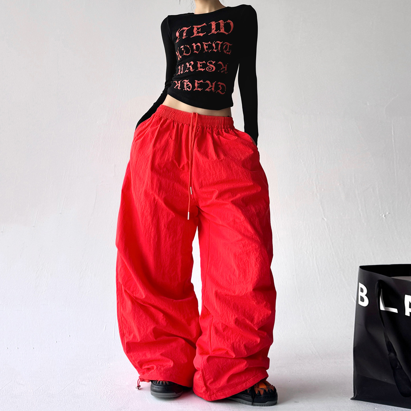 淘MarScallion葱啊男女伞兵速干裤蕾丝工装裤跳舞轻薄运动宽松街舞
