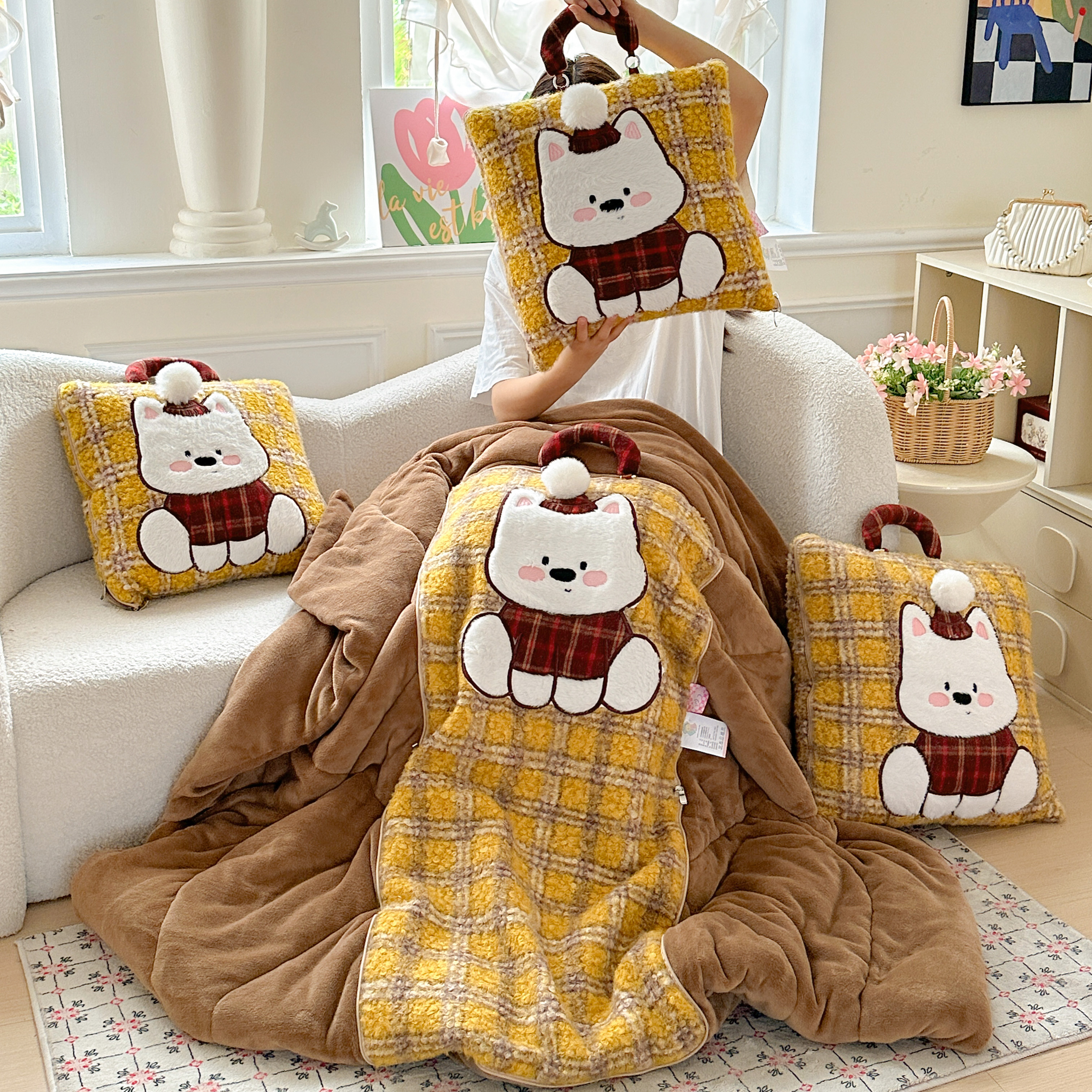 抱枕被两用加厚牛奶绒卡通车载靠垫办公室客厅沙发午睡可折叠毛毯