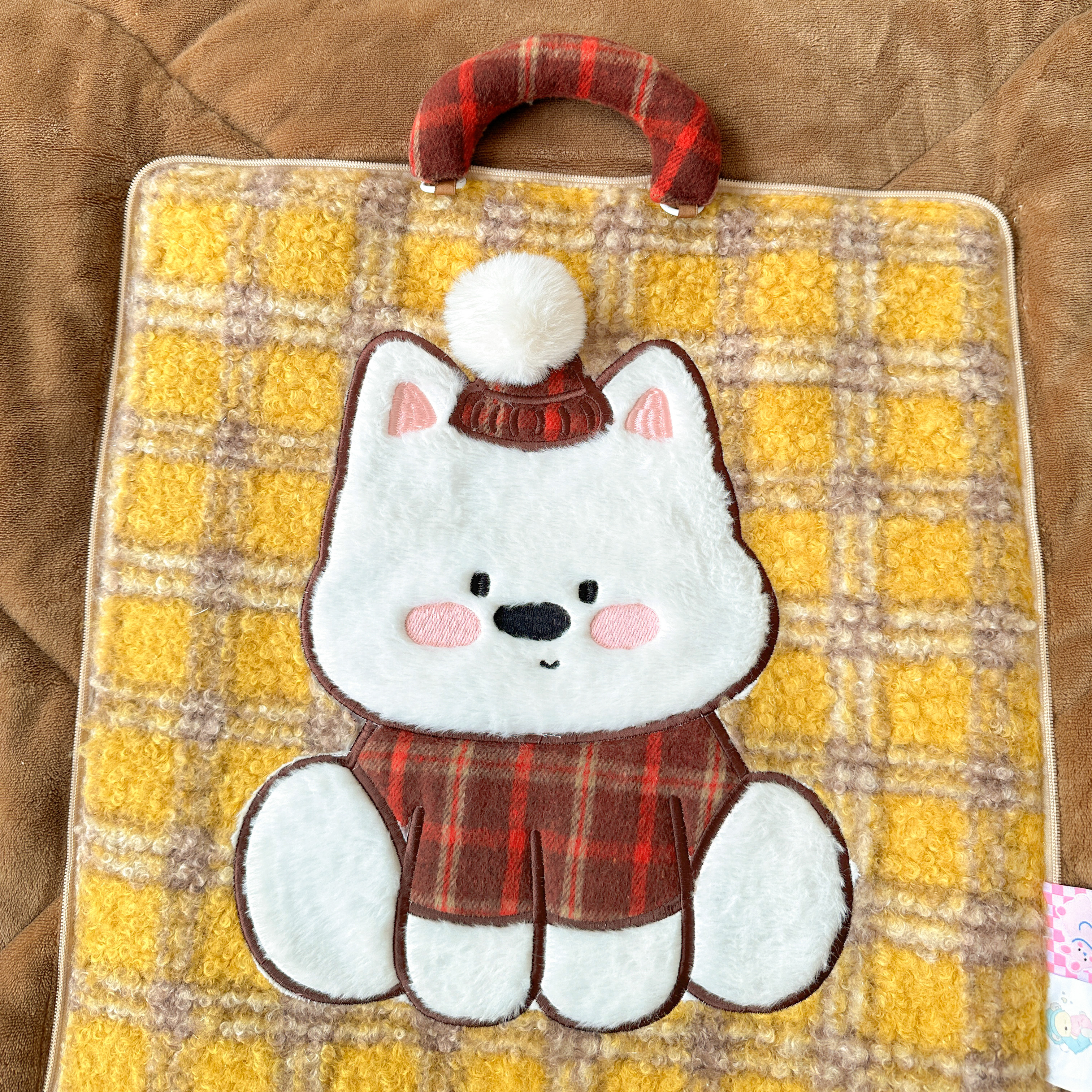 原创手提便携盖毯办公室午休毛毯披肩车载靠垫抱枕被毯子两用礼物
