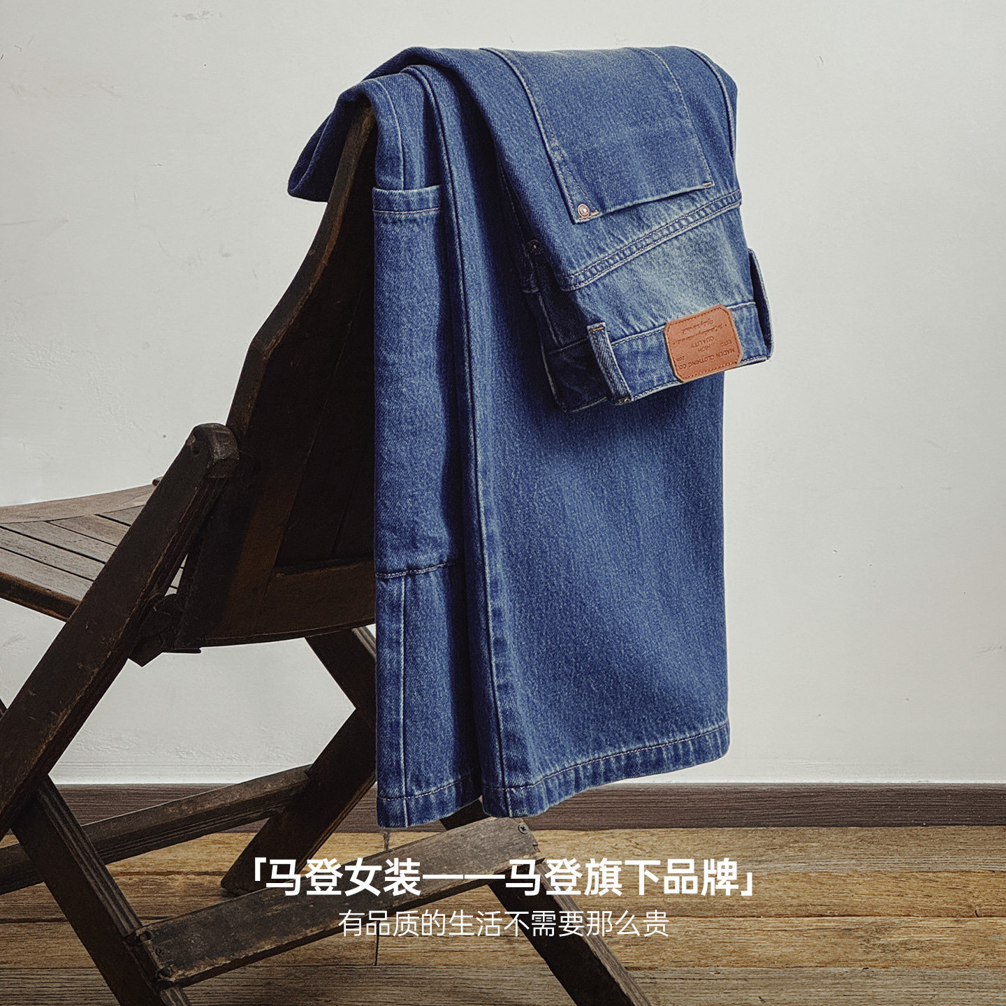 淘大码女装胖mm复古拼接阔腿牛仔裤女高腰显瘦做旧水洗工装风长裤潮