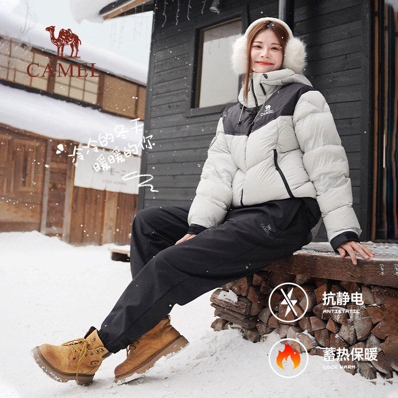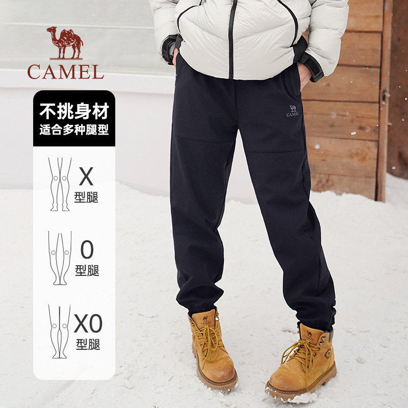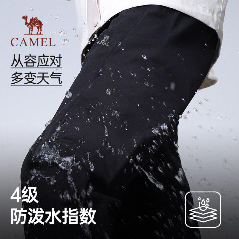 天猫骆驼加绒软壳裤女装2026年新款黑色防水加厚冲锋裤束脚工装裤子女