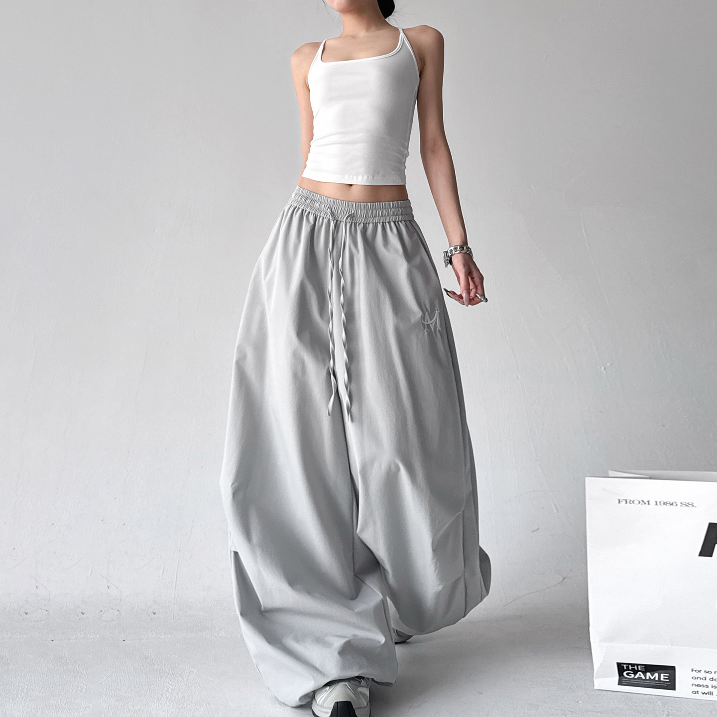 天猫休闲运动裤女2026春夏新款宽松慵懒风抽绳阔腿裤爵舞蹈工装速干裤