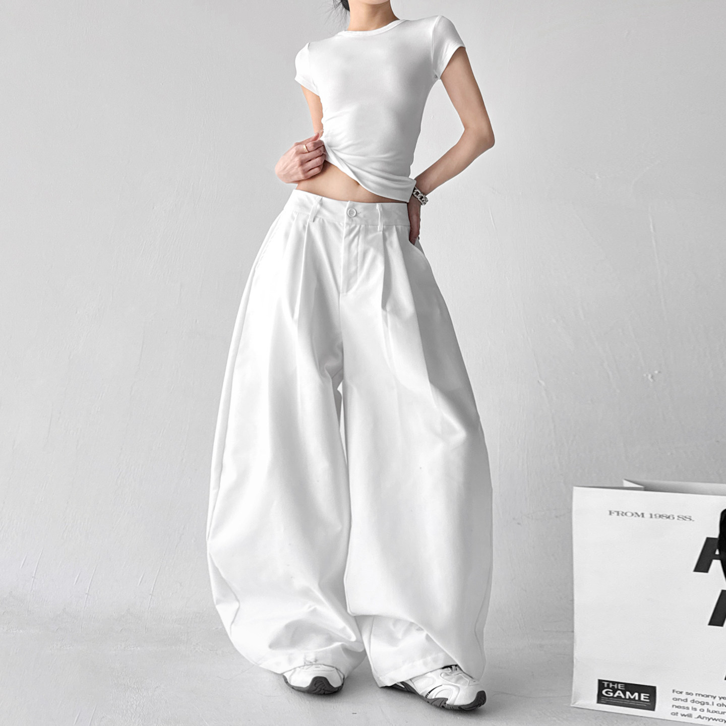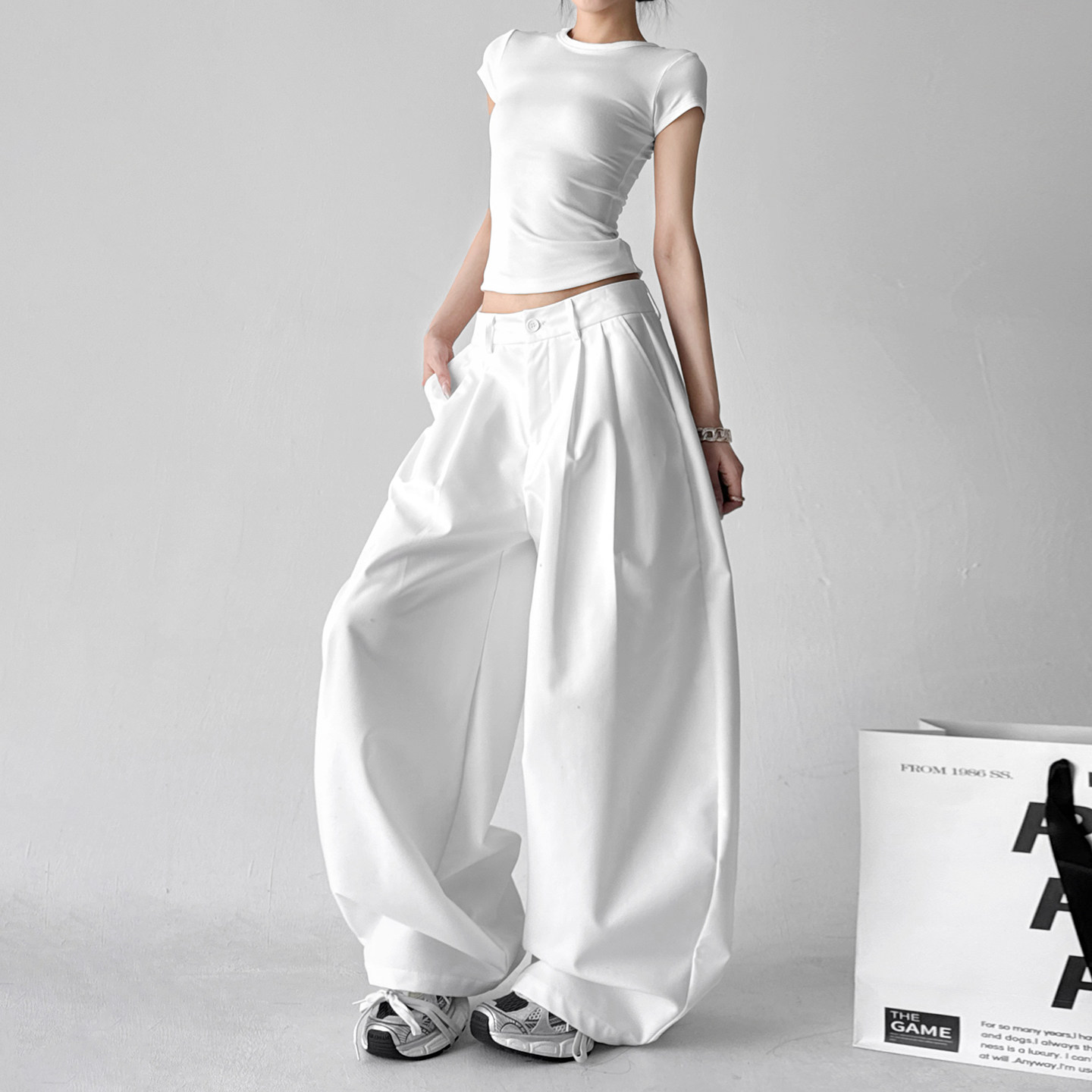 天猫简约风白色高腰工装裤女2026春季新款宽松慵懒风休闲独特西装裤子