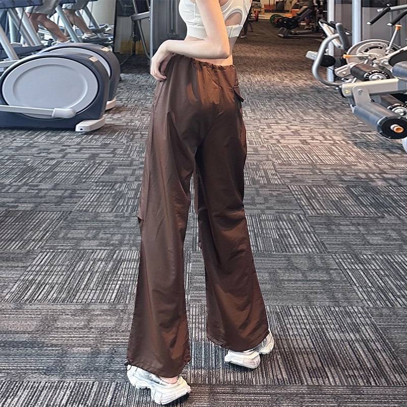 健身女孩宽松直筒运动长裤阔腿瑜伽透气户外休闲跑步工装裤薄款夏